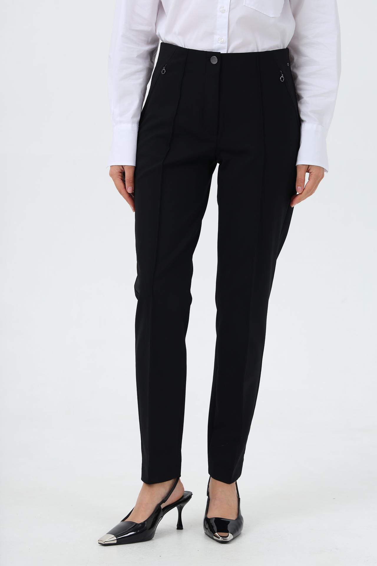 - Универсальность: Черный цвет и лаконичный дизайн делают эти брюки универсальными. Они легко сочетаются с блузками, рубашками, топами и жакетами, позволяя создавать разнообразные ансамбли.