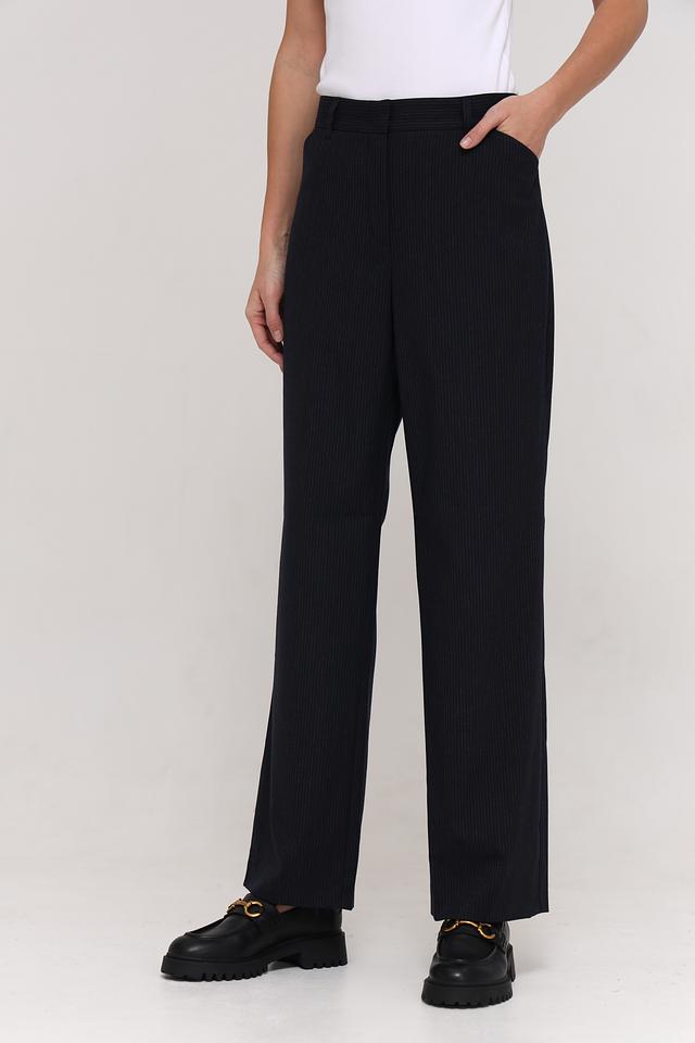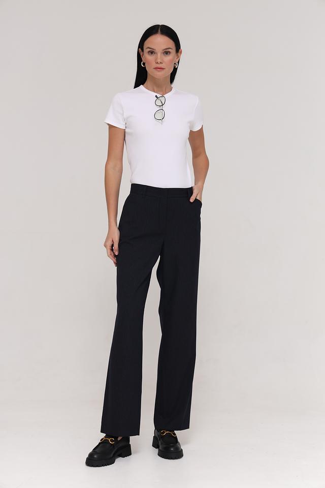 Брюки имеют прямой крой и стандартную посадку по талии. Они выполнены из смеси полиэстера, вискозы и эластана, что обеспечивает комфорт в носке, хорошую посадку по фигуре и устойчивость к сминанию.