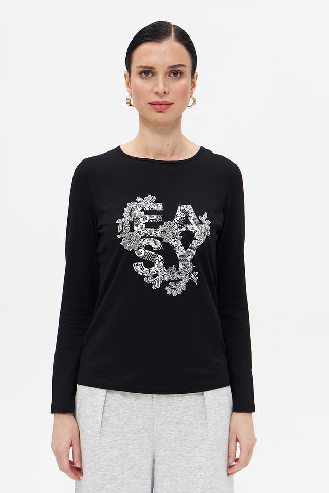 Чёрная футболка Gerry Weber с длинным рукавом и оригинальным цветочным принтом. Изготовлена из мягкого и приятного к телу сочетания модала, хлопка и эластана. Состав: модал 50%, хлопок 45%, эластан 5%