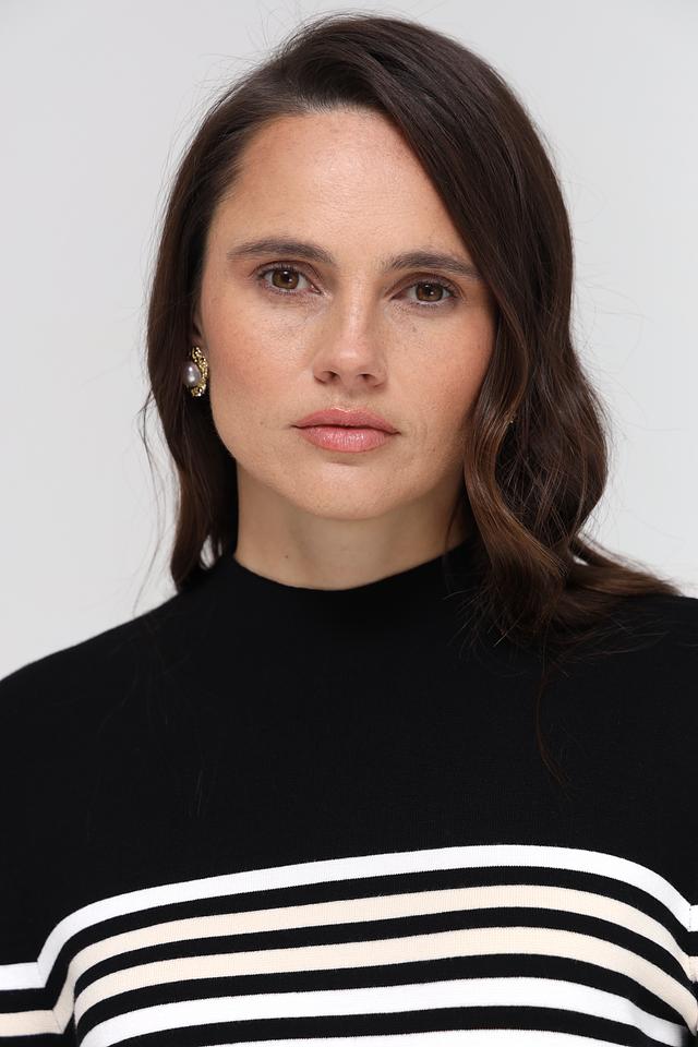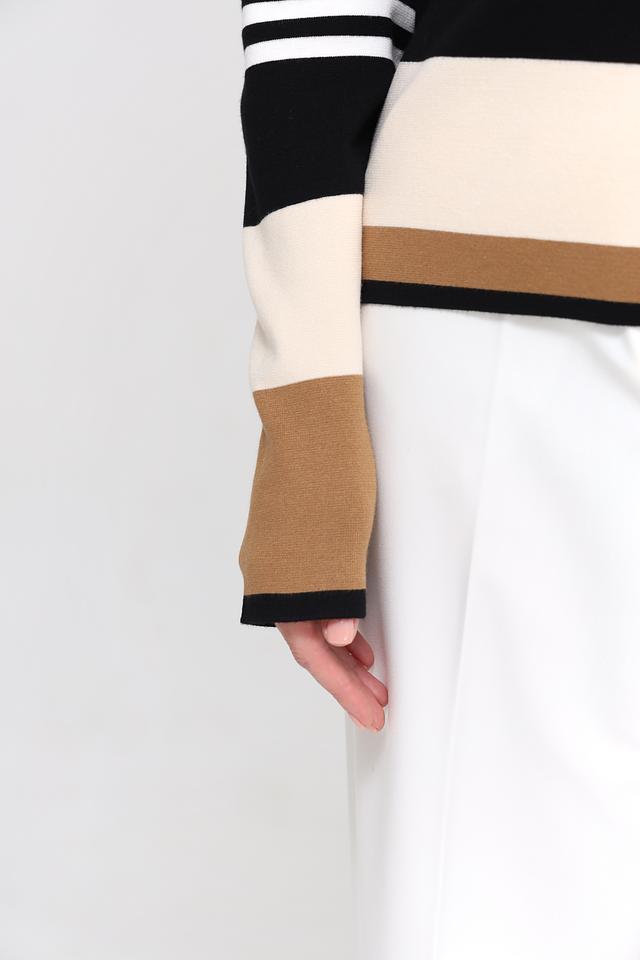 Этот пуловер от Gerry Weber станет отличным дополнением к вашему гардеробу. Модель выполнена в чёрном цвете с ярким полосатым узором, сочетающим в себе белый и коричневый оттенки.