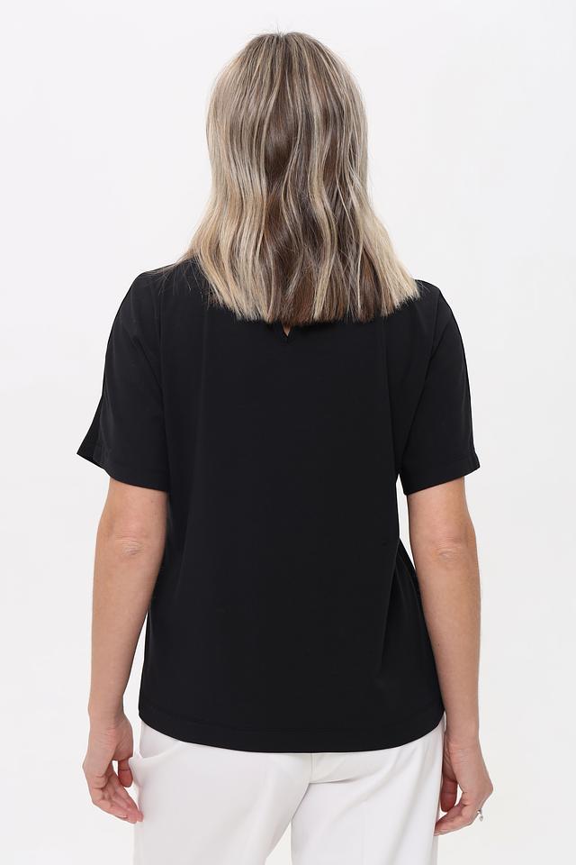 Чёрная блуза Gerry Weber с округлым вырезом и декоративной отделкой горловины. Изготовлена из мягкой и приятной к телу ткани, обеспечивающей комфорт в носке. Идеально подходит для создания элегантных и повседневных образов. Состав: хлопок 47%, модал 45%, эластан 8%