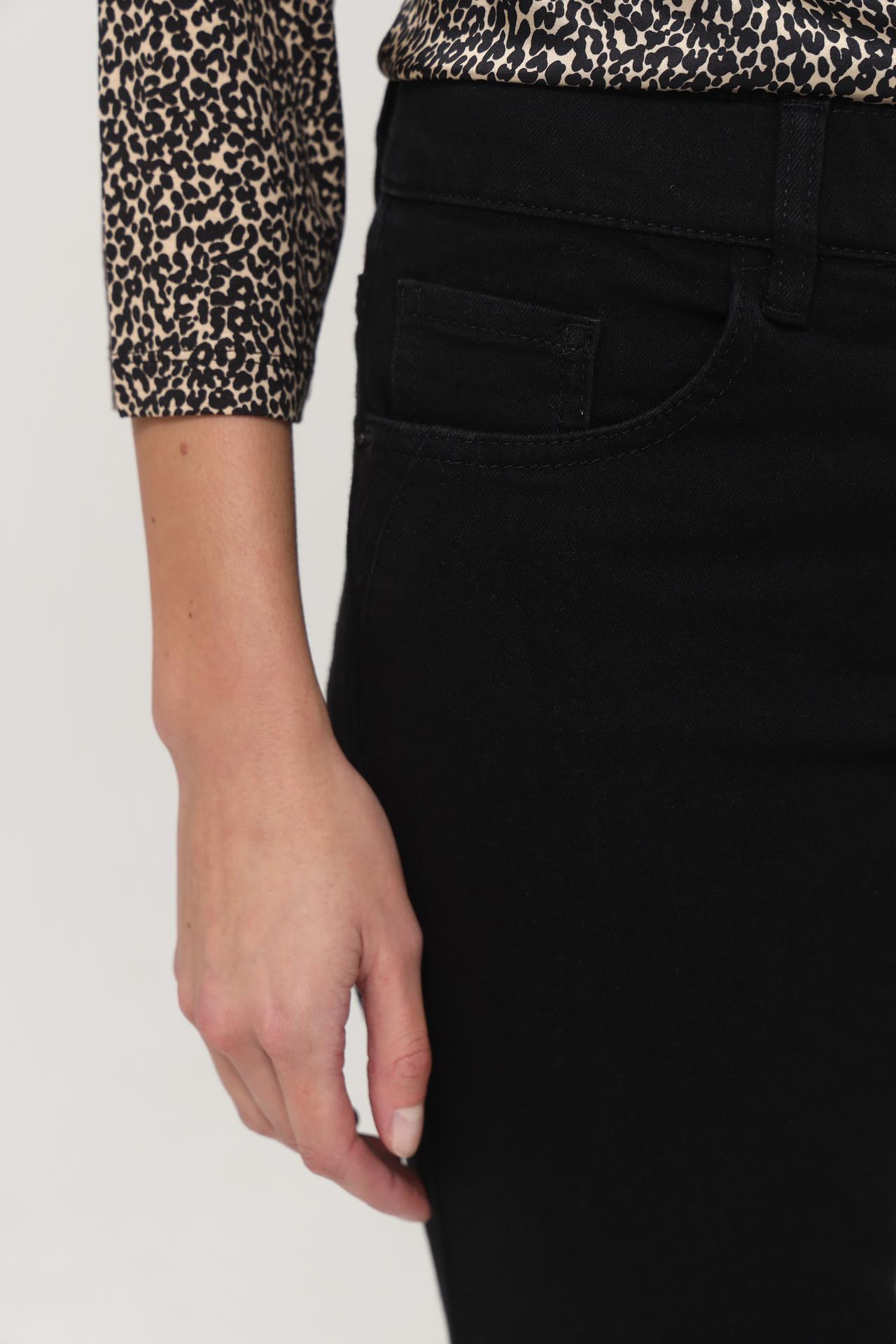- Универсальность: Лаконичный дизайн и черный цвет позволяют легко комбинировать джинсы с блузками, топами, свитерами и обувью на разной высоте каблука.
