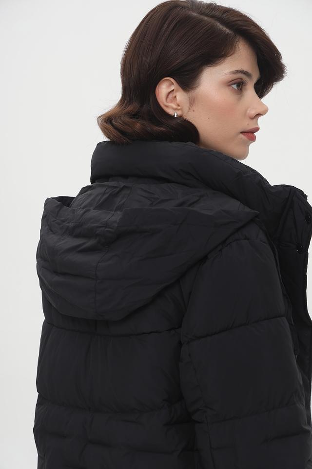 Куртка имеет стёганую текстуру, которая придает ей современный вид и обеспечивает дополнительную теплоизоляцию. Модель оснащена удобным капюшоном и застегивается на молнию. Два внешних кармана на кнопках позволяют безопасно хранить необходимые вещи.