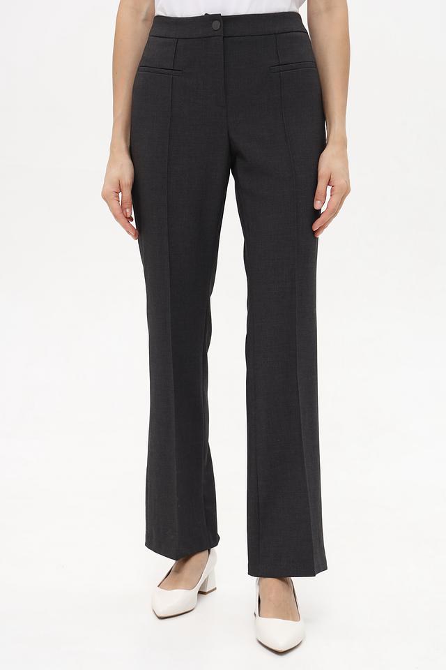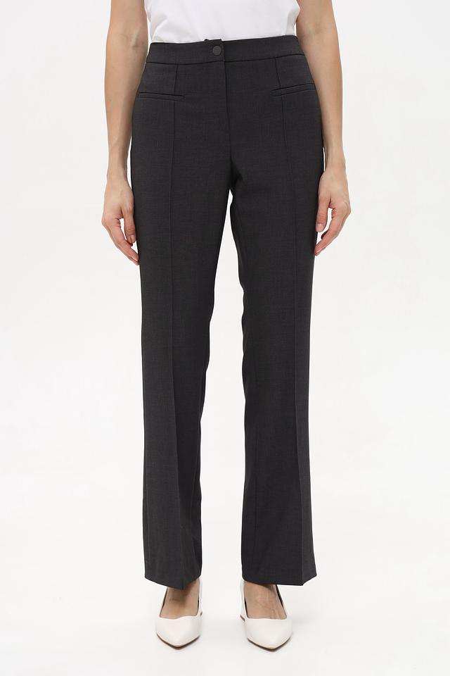 Брюки имеют прямой крой и застрочку, что придает им элегантный и утонченный вид. Высокая посадка подчеркивает талию и создает стройный силуэт. Застежка на молнию и пуговицу обеспечивает надежную фиксацию.