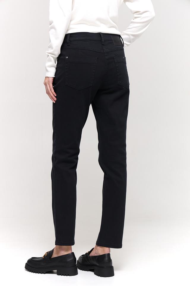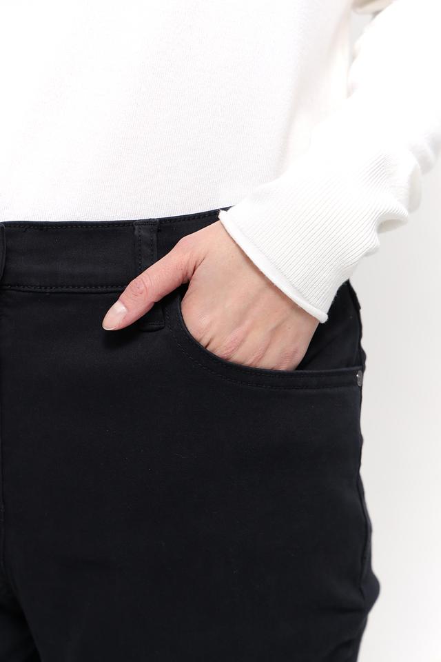 Модель имеет стандартную посадку по талии и зауженный к низу силуэт. Застежка на молнию и пуговицу. Пять карманов – два боковых, два задних и один небольшой карман для мелочи. Брюки идеально подойдут для создания как повседневных, так и более элегантных образов.