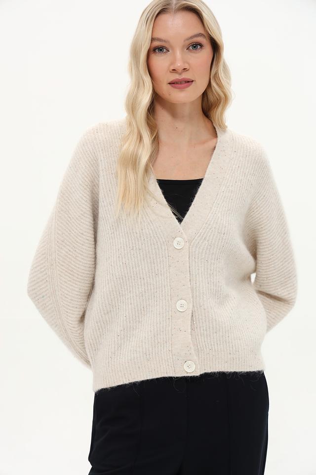 Бежевый жакет Gerry Weber из мягкого вязаного полотна станет отличным дополнением к вашему гардеробу. Модель с V-образным вырезом и застёжкой на пуговицы, выполненная в свободном крое, обеспечит комфорт и стиль. Состав: полиамид 34%, шерсть 20%, полиэстер 17%, полиакрил 12%, альпака 10%, эластан 4%, метализ.полиэстер 3%
