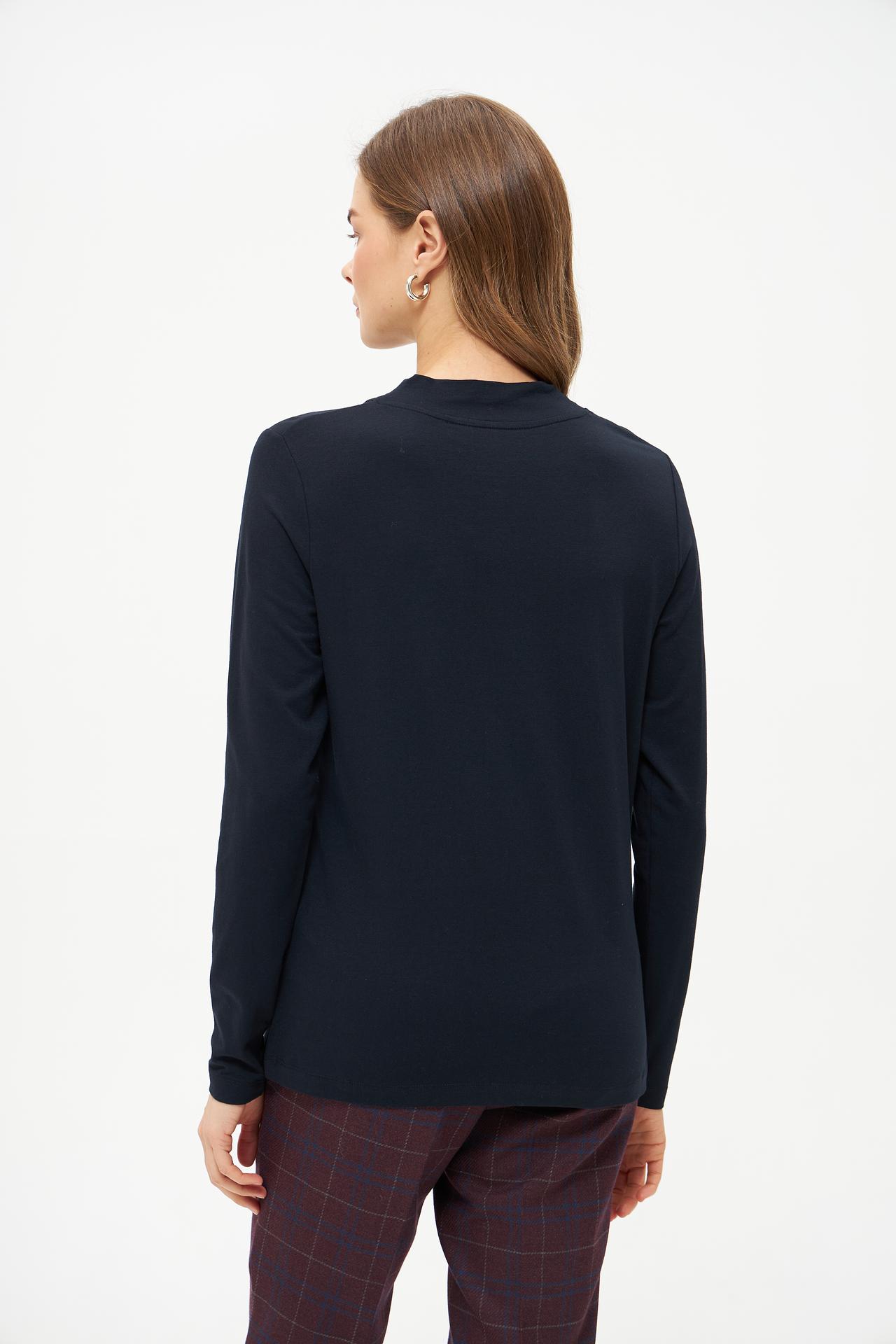 Состав ткани – 5% эластан, 50% модал, 45% хлопок – гарантирует мягкость и эластичность. Модал придает изделию шелковистость и воздухопроницаемость, хлопок обеспечивает гигроскопичность, а эластан способствует сохранению формы и отличной посадке по фигуре. Этот женский пуловер подчеркнет вашу элегантность в любой ситуации.