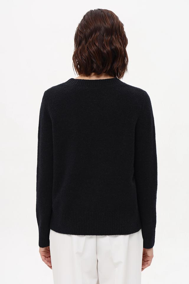 Чёрный пуловер Gerry Weber EDITION из мягкой пряжи с декоративной отделкой. Модель имеет круглый вырез и длинные рукава, идеально подходит для создания элегантного повседневного образа. Состав: полиамид 44%, шерсть 32%, полиэстер 21%, эластан 3%