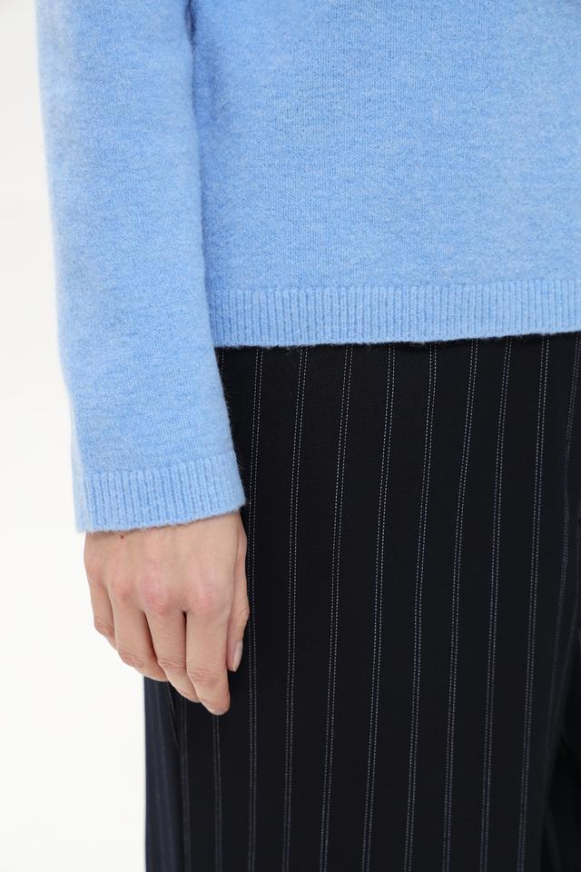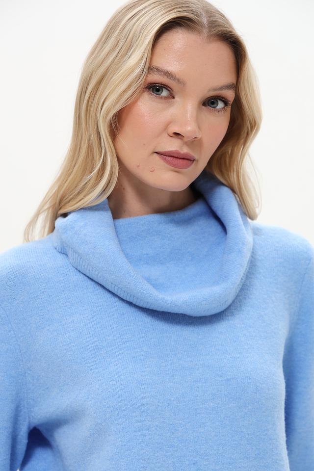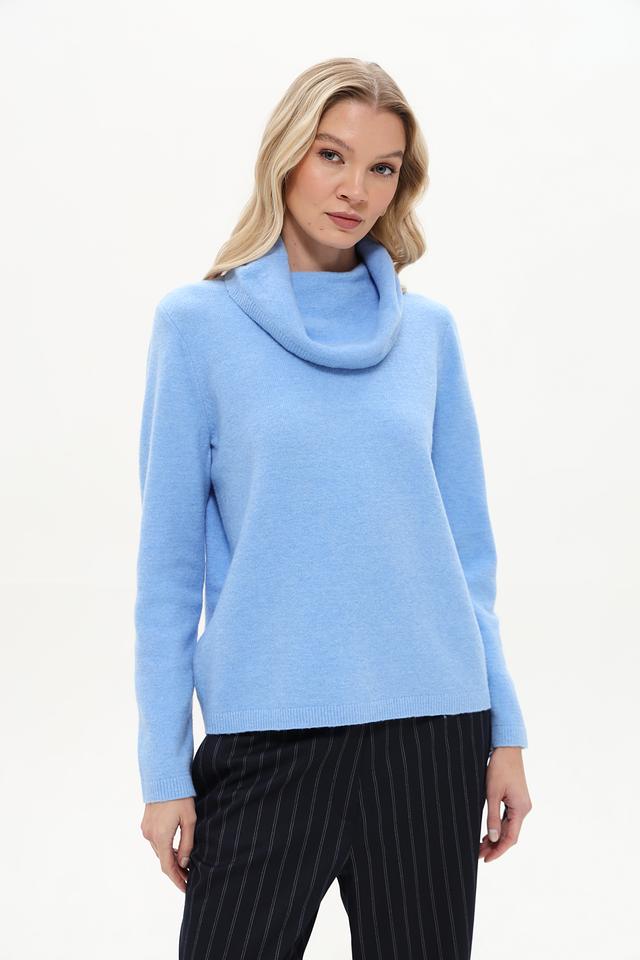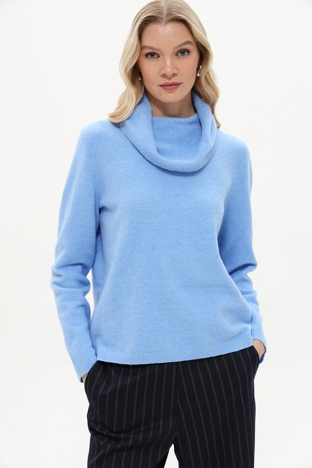 Дизайн пуловера лаконичный и элегантный. Высокий горл придаёт ему изысканность, а вязаная текстура добавляет объём и уют. Пуловер идеально сочетается с брюками, юбками и джинсами, позволяя создавать стильные и комфортные комплекты.