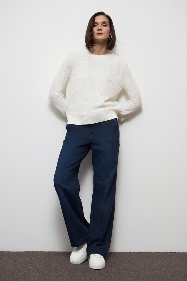 Джинсы имеют прямой, широкий крой, который обеспечивает свободу движений и комфорт в течение всего дня. Пояс средней посадки и классическая застёжка на пуговицу и молнию.