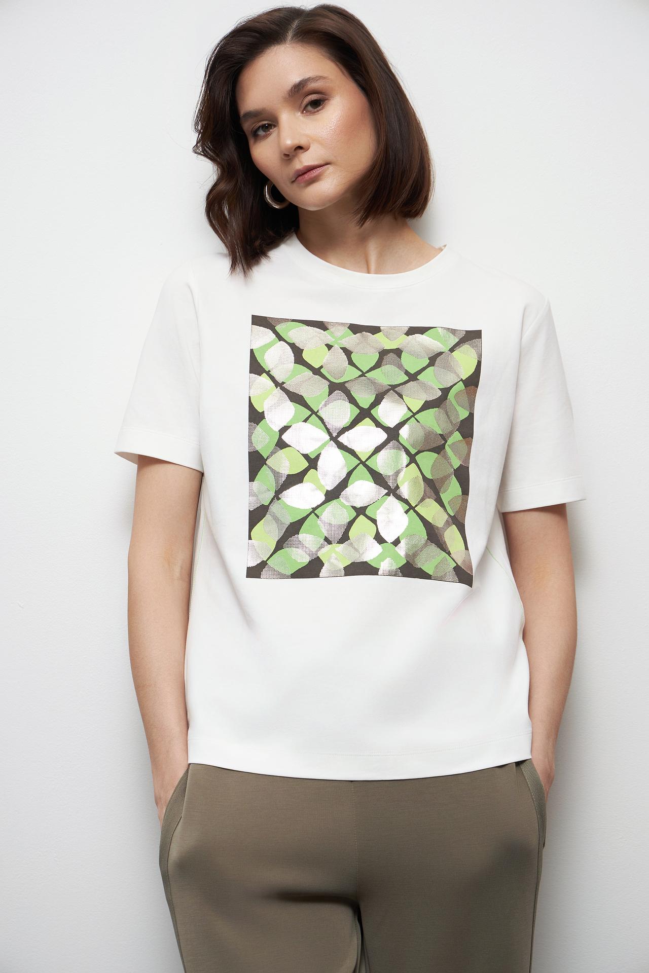 Элегантная женская футболка от Gerry Weber станет прекрасным дополнением вашего гардероба. Изготовленная из высококачественного материала (94% хлопок, 6% эластан), она обеспечит комфорт и свободу движений в течение всего дня. Стильный принт добавляет оригинальности и делает эту футболку отличным выбором для создания модных образов.