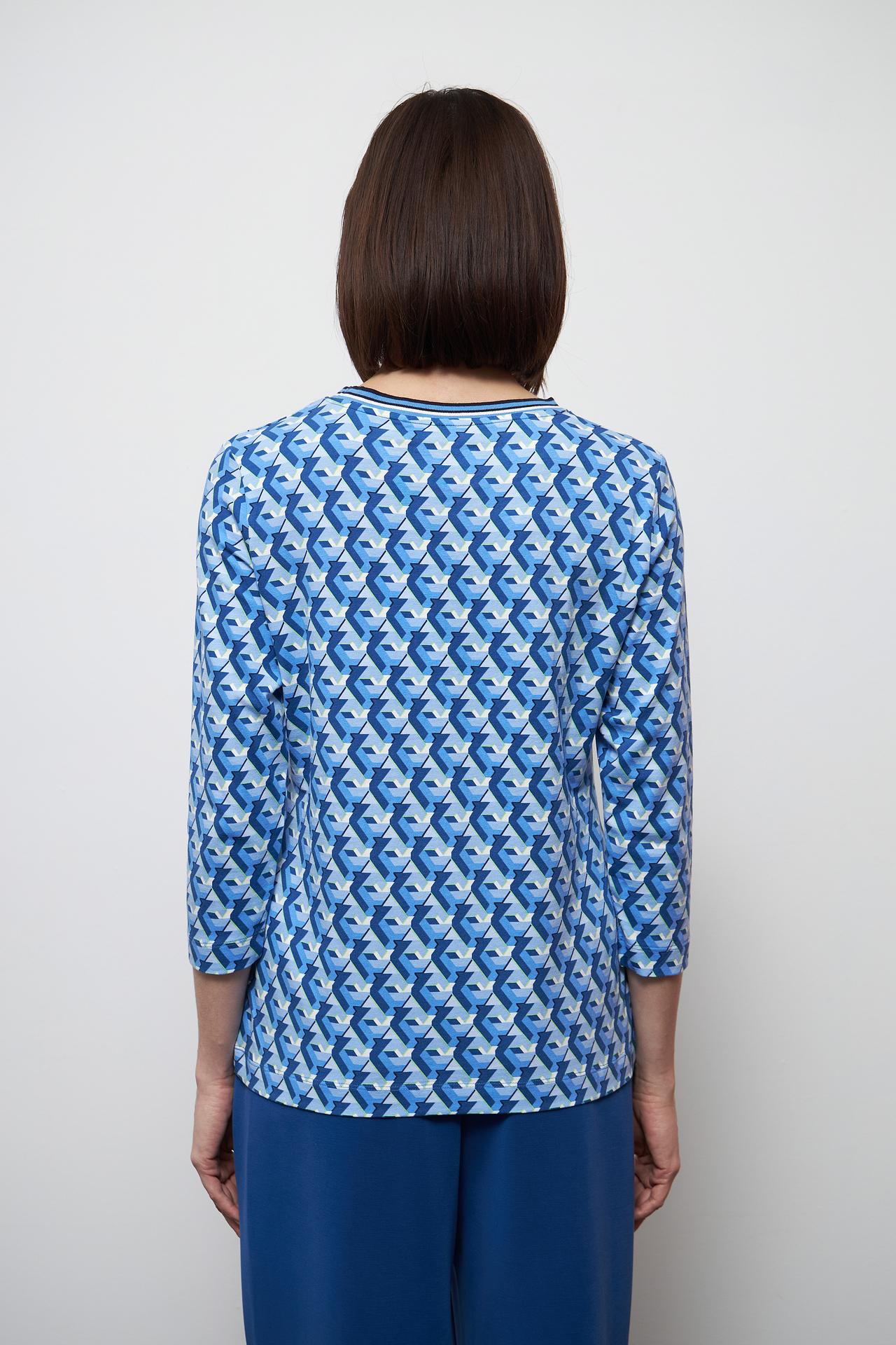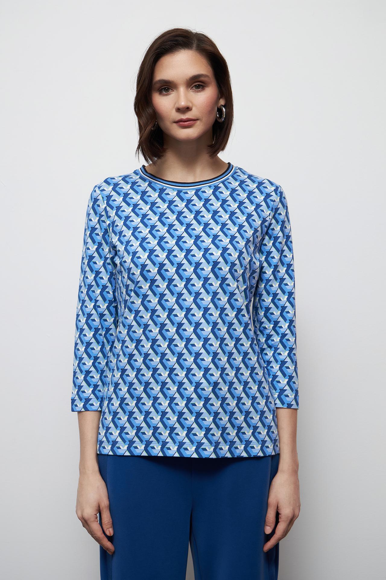 Лонгслив Gerry Weber синий с геометрическим узором и полосатой окантовкой