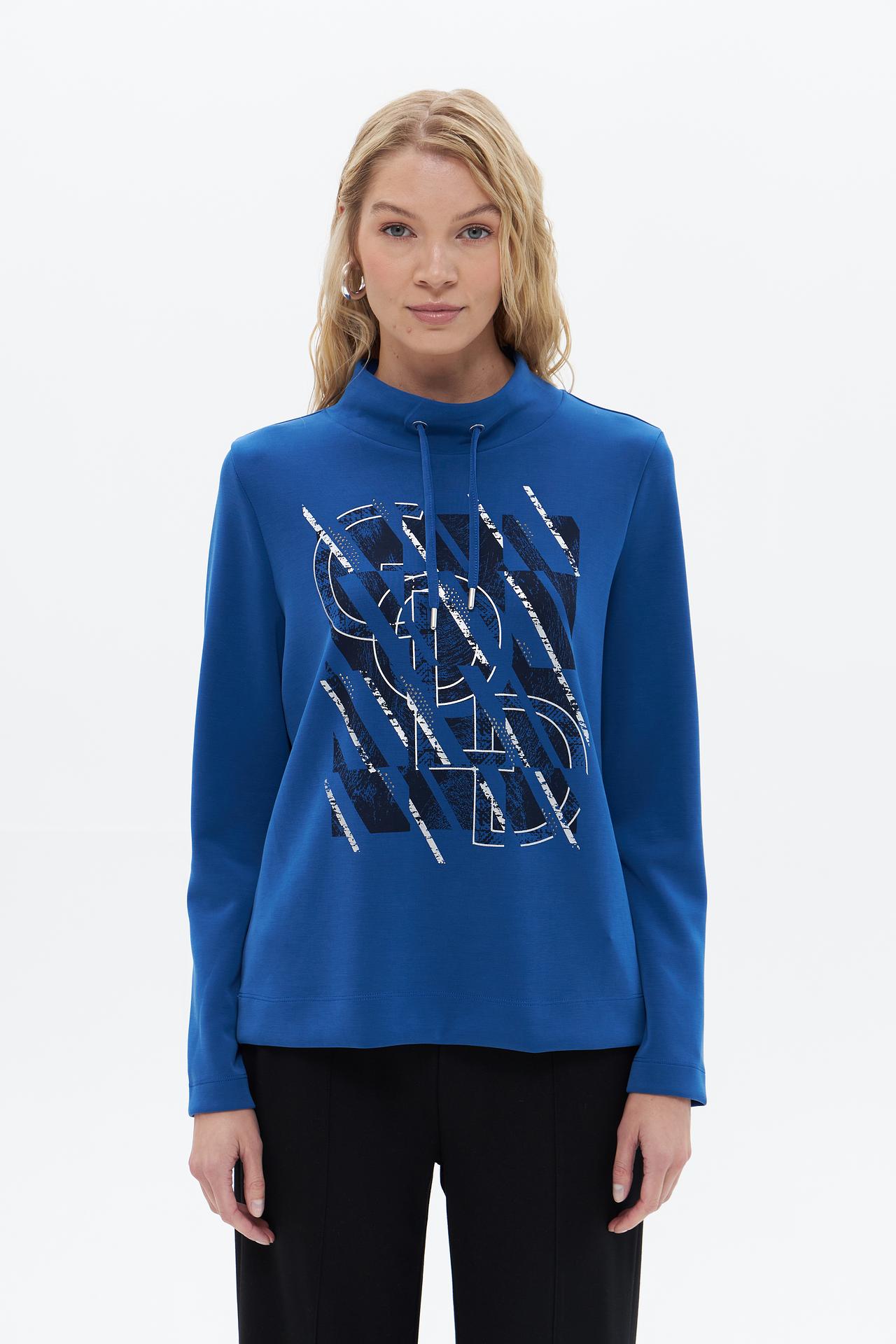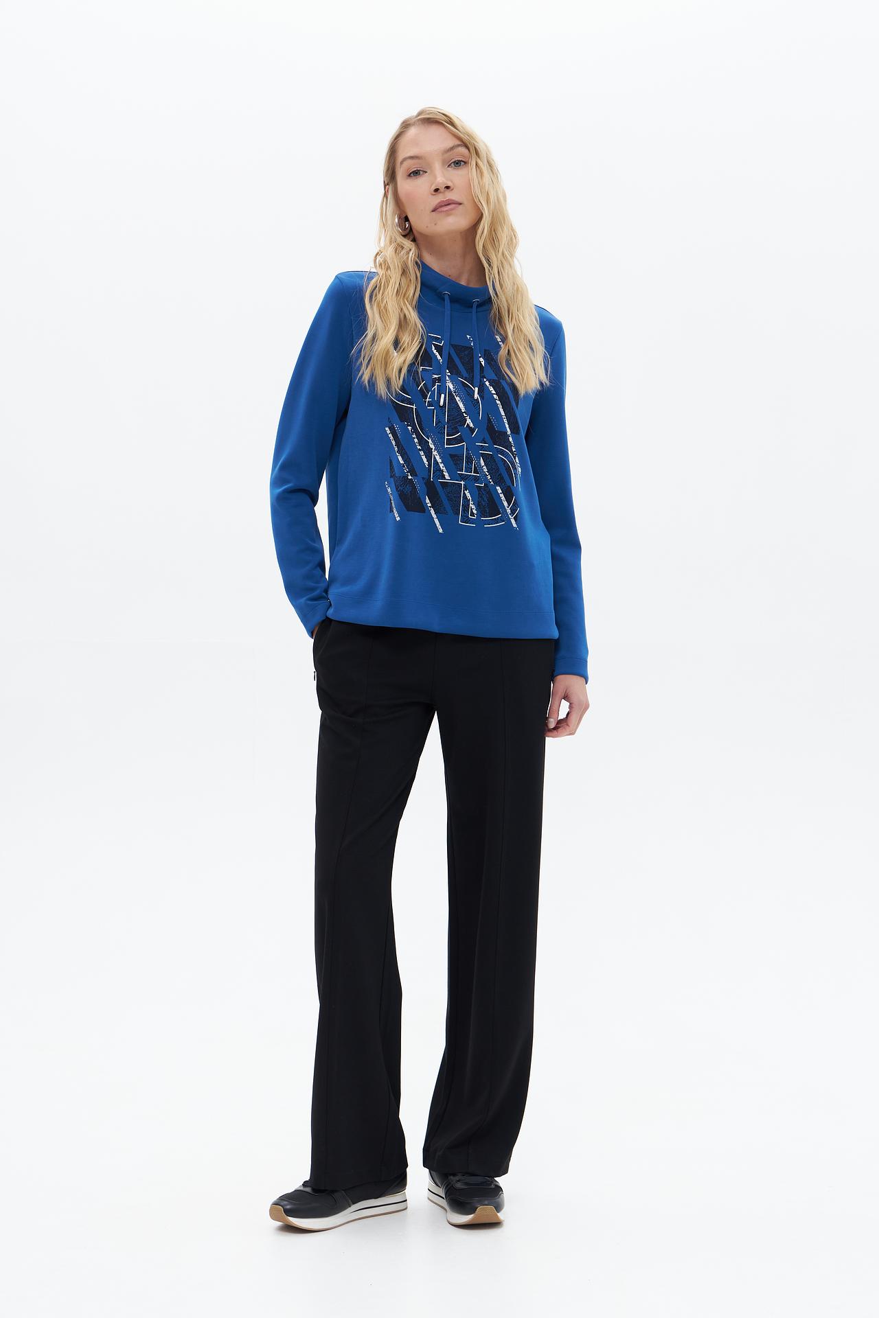 Синий пуловер с капюшоном и принтом Gerry Weber