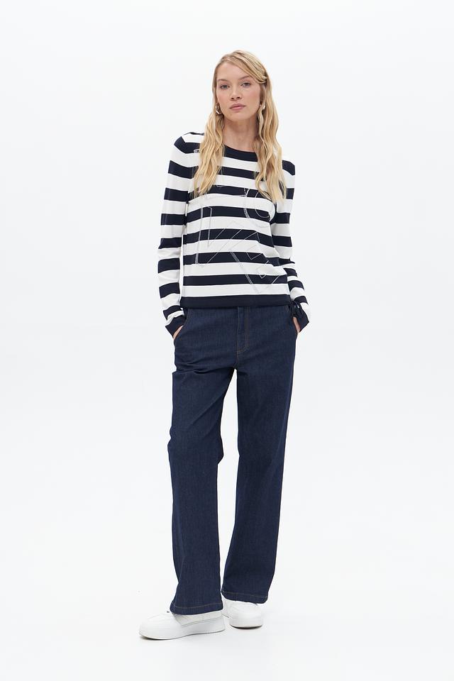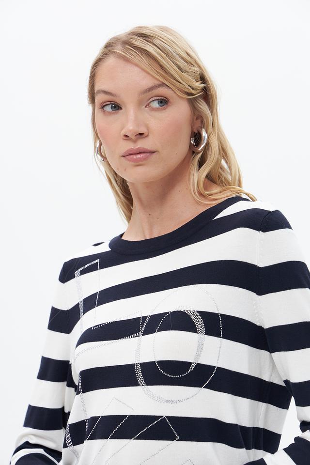 Этот стильный пуловер от Gerry Weber станет прекрасным дополнением к вашему гардеробу. Модель выполнена в классической полосатой расцветке – сочетание насыщенного синего и чистого белого цветов делает образ свежим и актуальным.