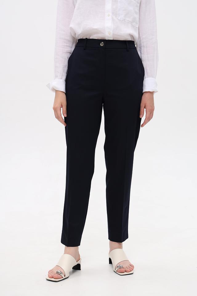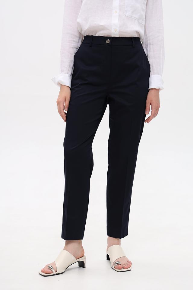 Тёмно-синие брюки Gerry Weber EDITION из хлопка с добавлением эластана. Классический крой, высокая посадка, зауженный книзу силуэт. Удобная и практичная модель для создания стильных образов. Состав: хлопок 96%, эластан 4%