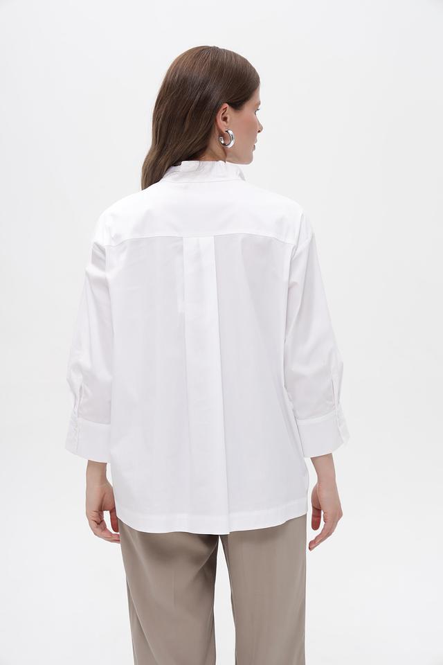 Белая блузка Gerry Weber из хлопка с рукавом 3/4 и воротником-стойкой. Изготовлена из качественного хлопка с добавлением полиамида и эластана для комфорта и долговечности. Состав: хлопок 82%, полиамид 15%, эластан 3%