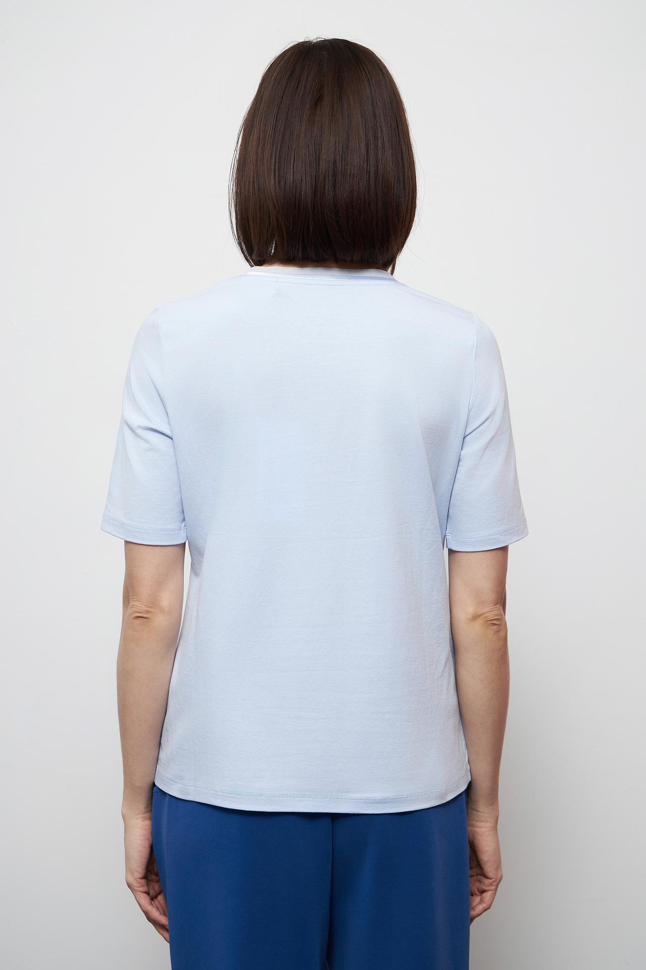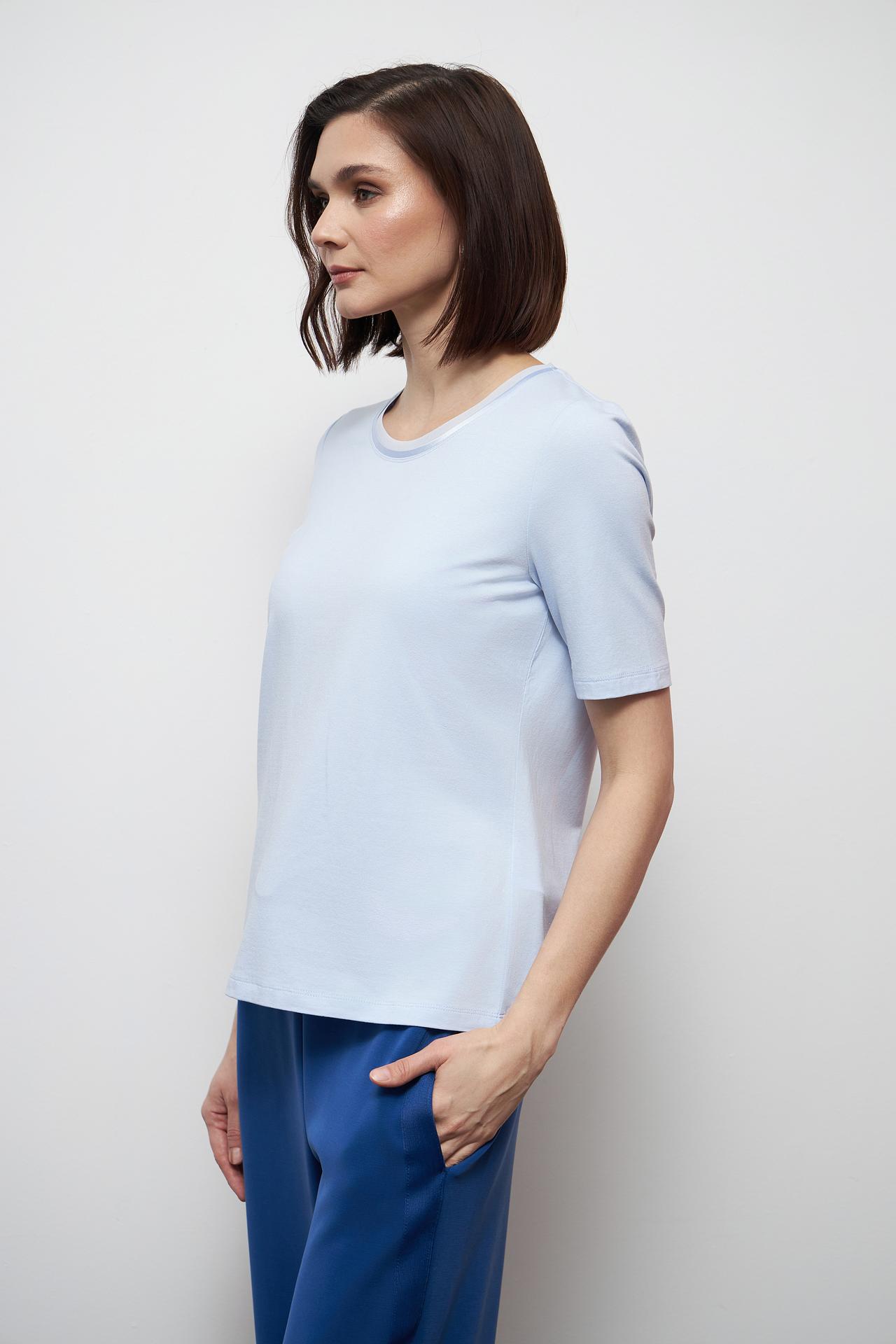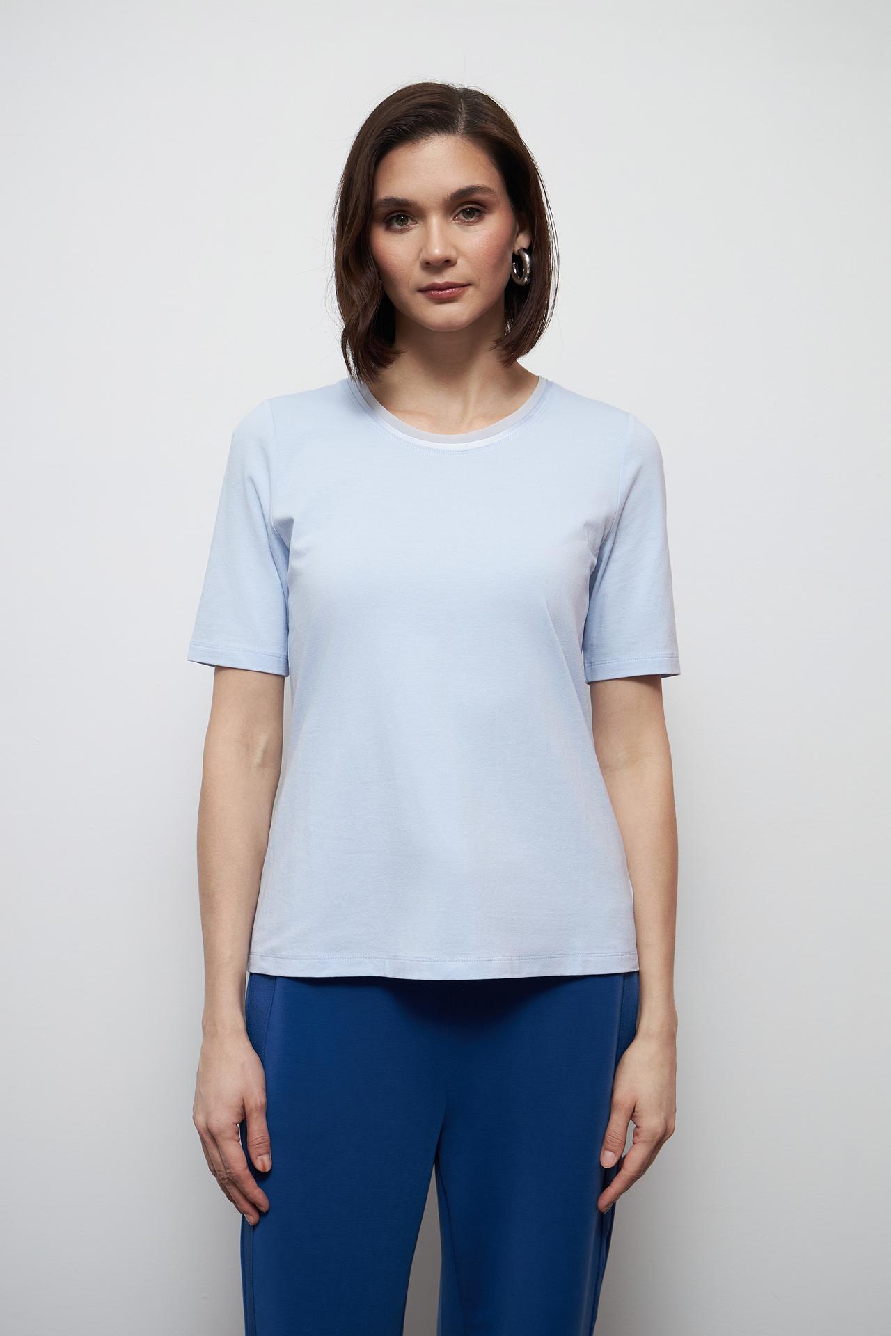 Элегантный и лаконичный дизайн делает эту футболку универсальным элементом гардероба. Она идеально подходит как для создания повседневных образов, так и для более формальных случаев. Мягкий, дышащий материал дарит ощущение свежести и уверенности в течение всего дня.
