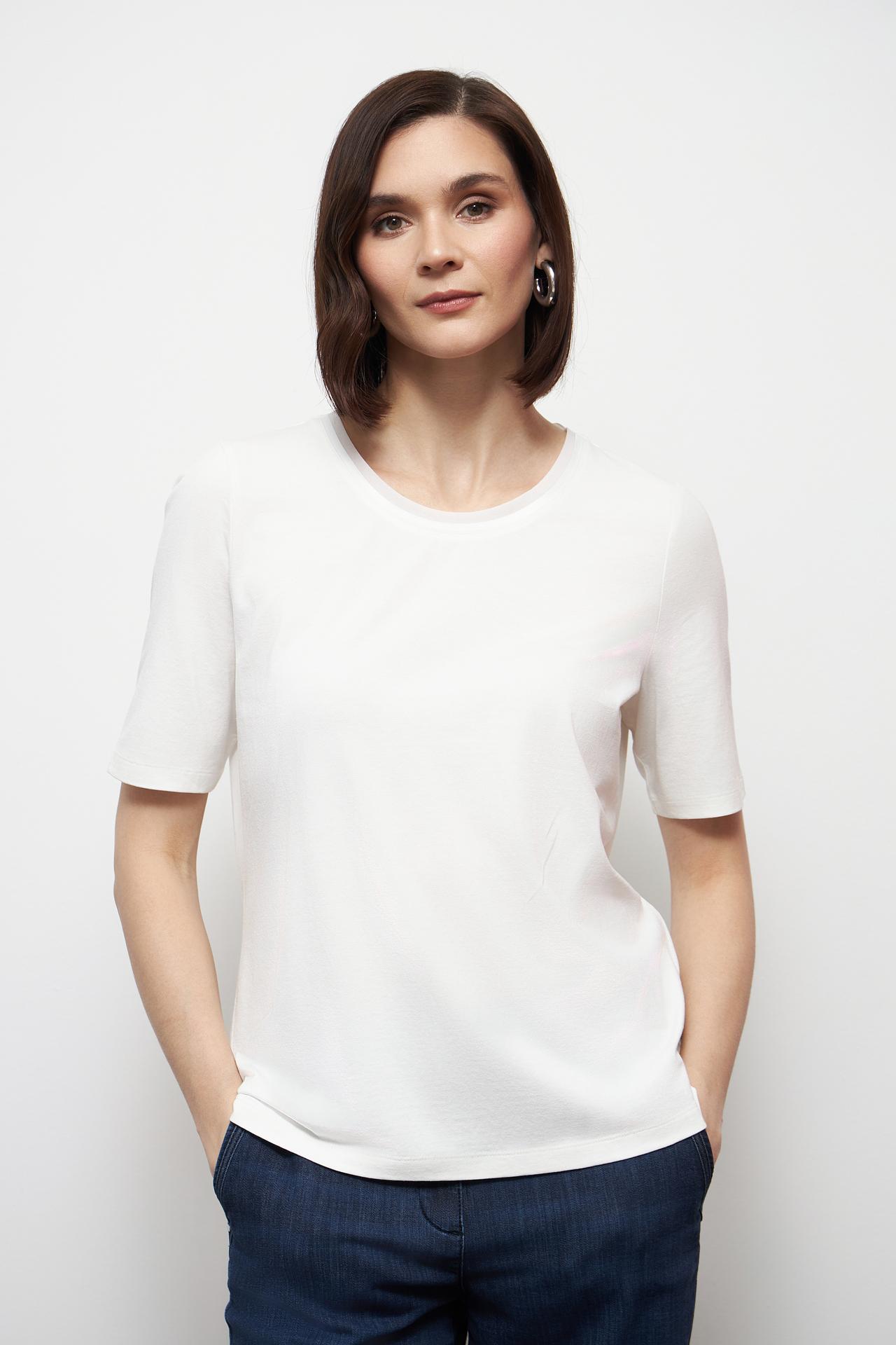 Элегантная базовая футболка от Gerry Weber – это идеальное сочетание комфорта и стиля. Мягкая и приятная к телу ткань обеспечивает комфорт в течение всего дня. Модный крой и лаконичный дизайн делают эту футболку универсальным элементом гардероба. Идеальна для создания разнообразных образов.