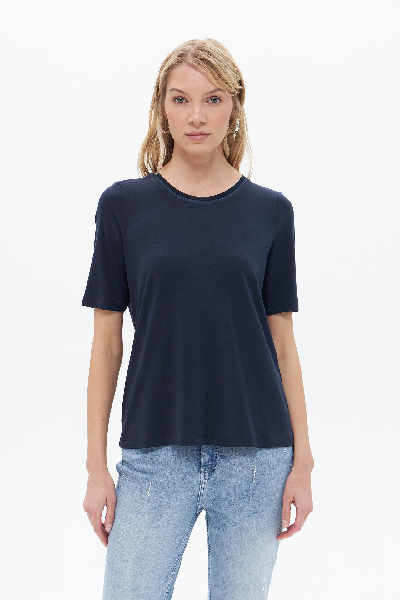Футболка идеально подойдет для создания как повседневных, так и более формальных образов. Благодаря своему универсальному дизайну, она легко сочетается с джинсами, брюками, юбками. Подчеркните свой безупречный вкус с этой элегантной футболкой от Gerry Weber.