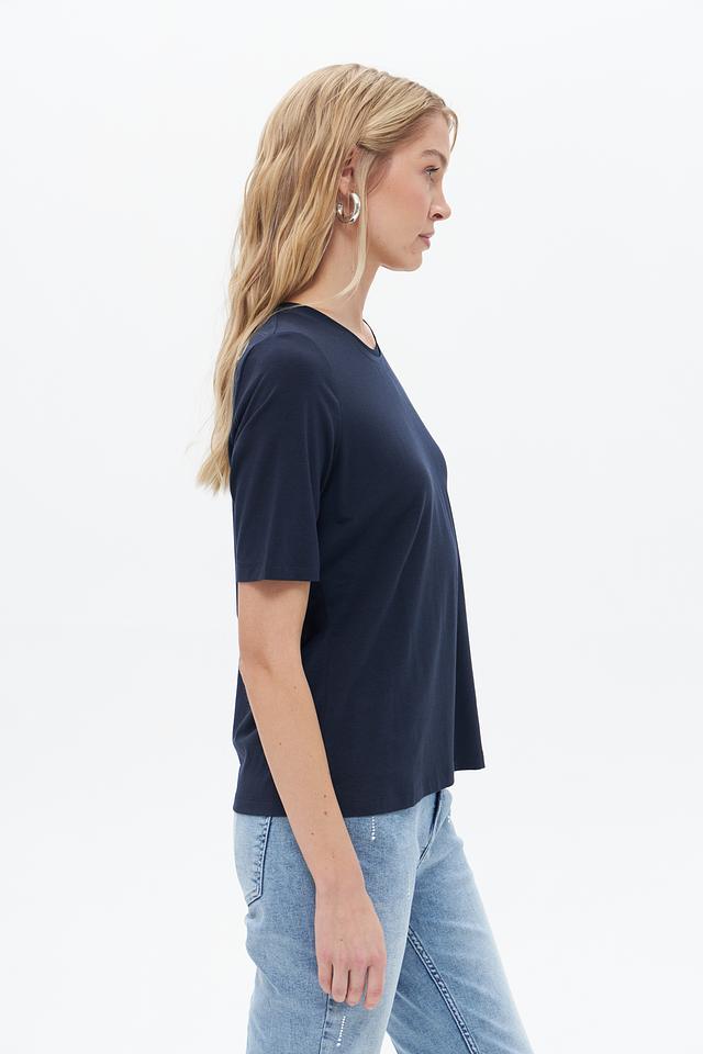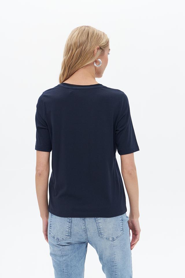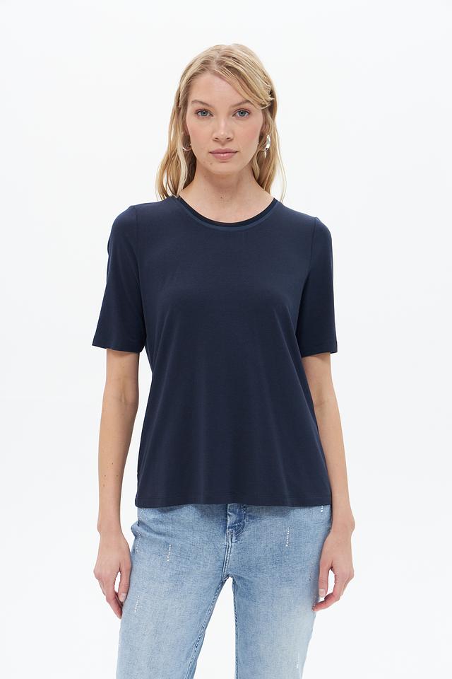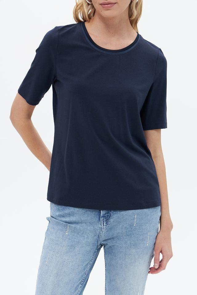 Темно-синяя футболка Gerry Weber EDITION из мягкого трикотажа станет отличным дополнением к вашему гардеробу. Классический крой и лаконичный дизайн делают эту футболку универсальной для создания различных образов. Состав: хлопок 47%, модал 47%, эластан 6%