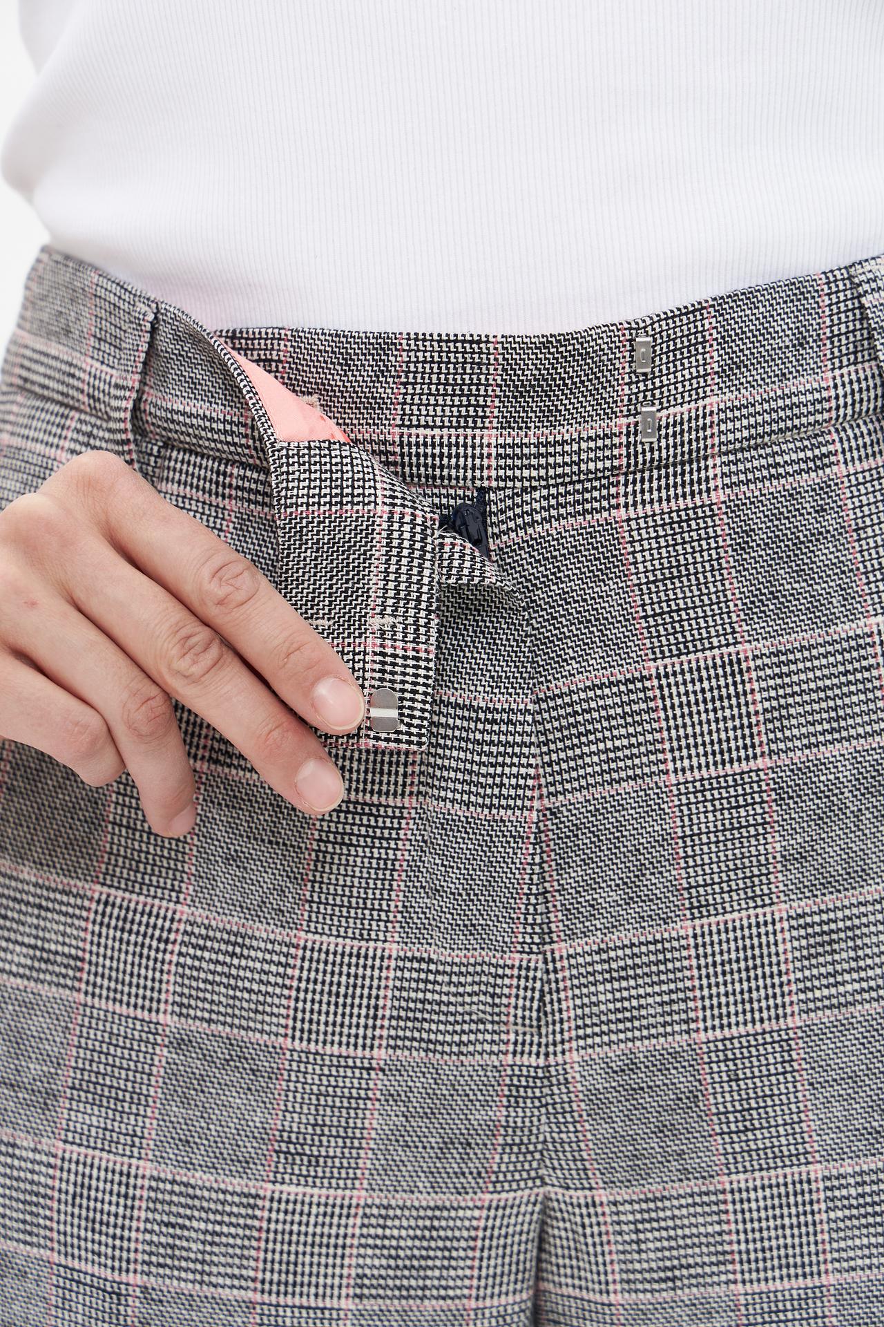 - Дизайн: Классическая клетка в серо-розовой гамме – это элегантное решение, которое никогда не выходит из моды. Этот узор придает брюкам утонченность и позволяет создавать разнообразные стильные комбинации.