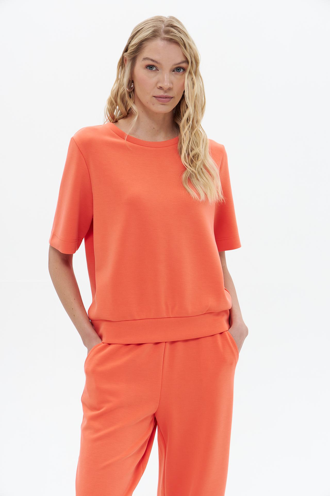 - Классический крой: Пуловер с круглым вырезом горловины и короткими рукавами легко сочетается с различными элементами гардероба.