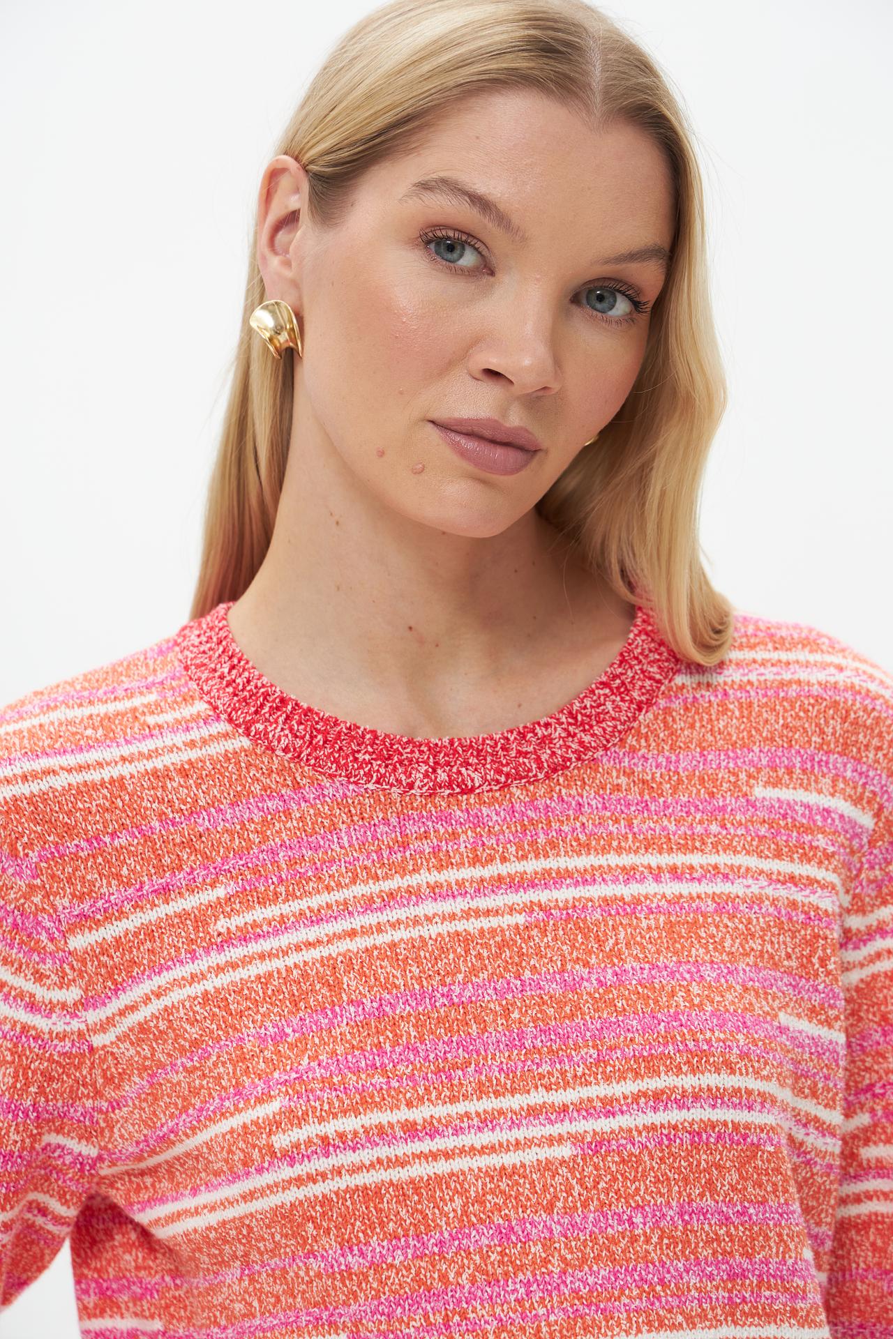 - Универсальный дизайн. Полосатый узор делает этот пуловер легким в сочетании с различными элементами гардероба.