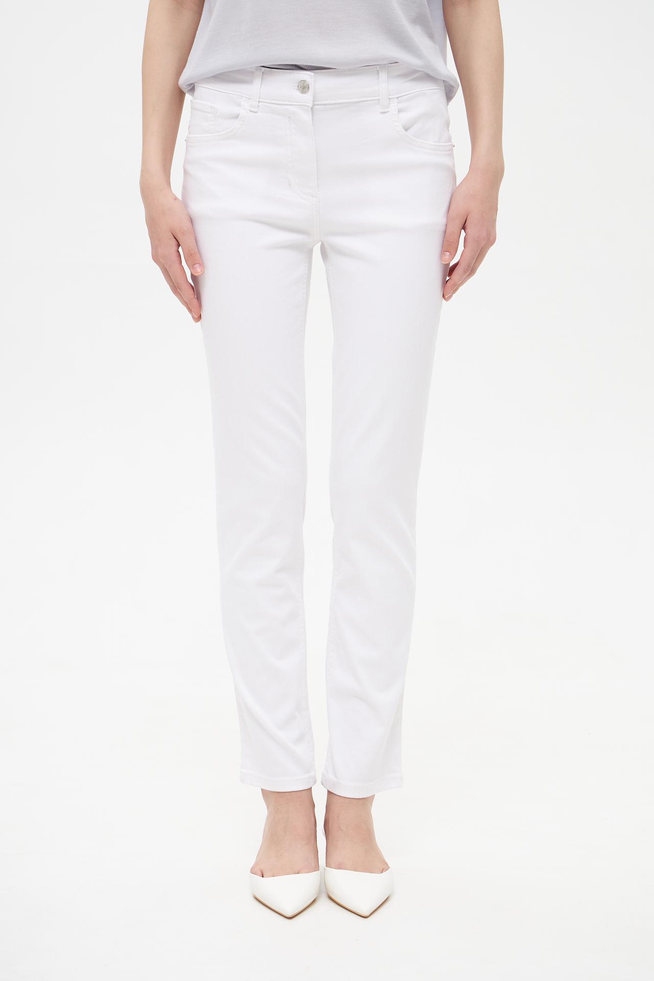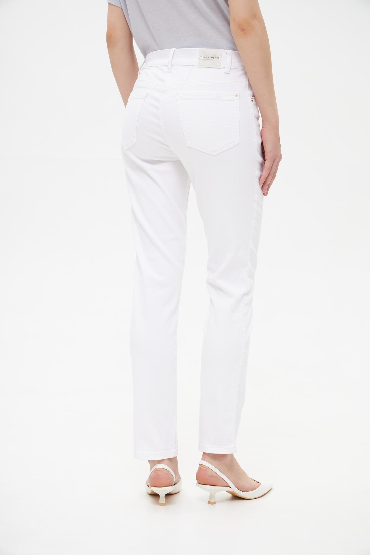 Состав ткани включает 2% эластана, 92% хлопка и 6% эластомультиэстера, обеспечивая идеальную посадку по фигуре и долговечность. Эти джинсы прекрасно подойдут как для работы, так и для прогулок по городу. Белый цвет джинсов придает образу свежесть и легкость, делая их универсальным элементом гардероба.