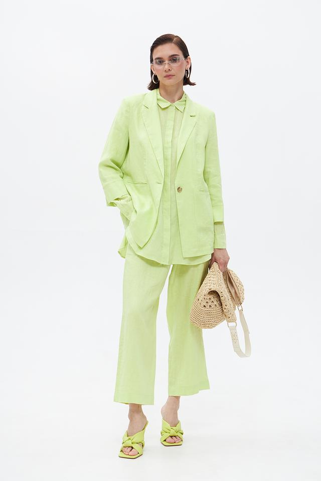 Жакет идеально сочетается с брюками, юбками и платьями, позволяя создавать разнообразные комплекты для повседневной носки. Мятный оттенок освежает образ и подходит к различным цветовым решениям. Этот жакет станет незаменимой вещью в гардеробе современной женщины.