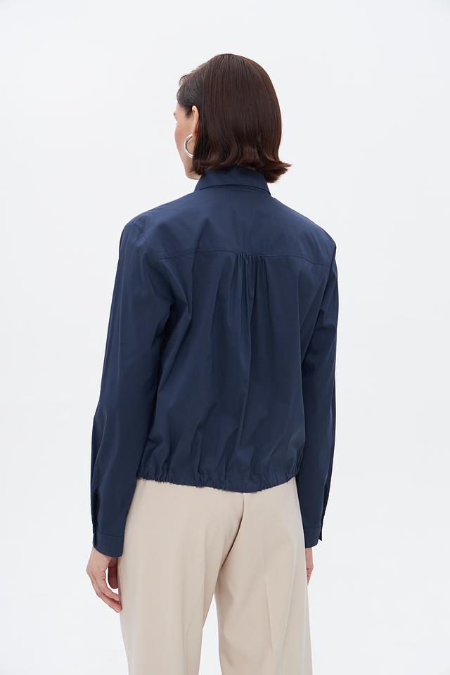 Синяя блузка Gerry Weber из хлопка с полиамидом и эластаном. Модель с длинным рукавом, классическим воротником и завязками по бокам для создания силуэта. Идеально подходит для создания повседневных образов. Состав: хлопок 74%, полиамид 23%, эластан 3%