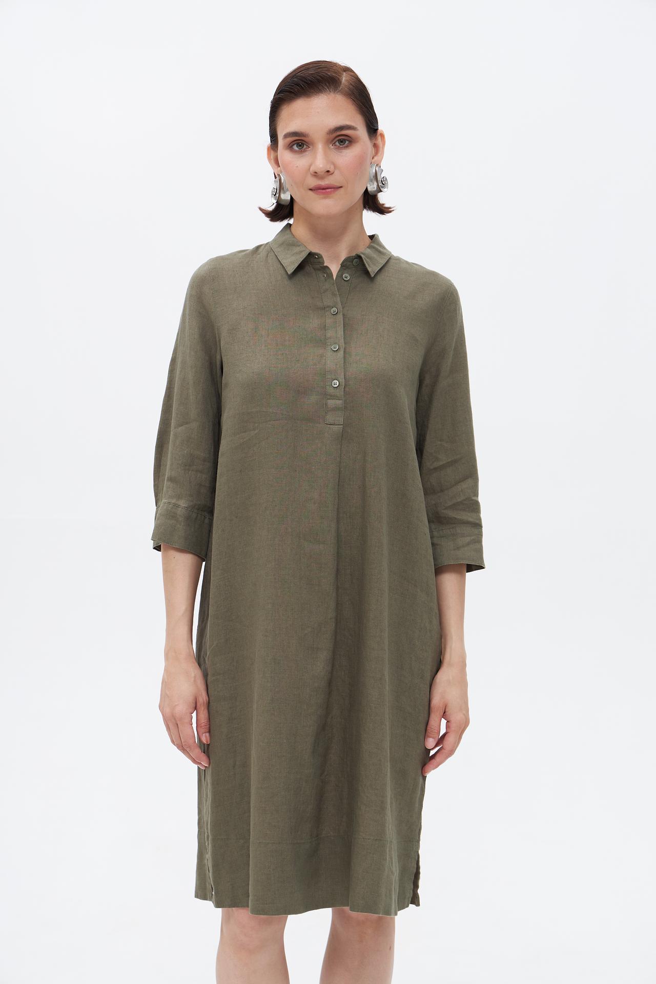 Льняное платье-рубашка Gerry Weber цвета хаки
