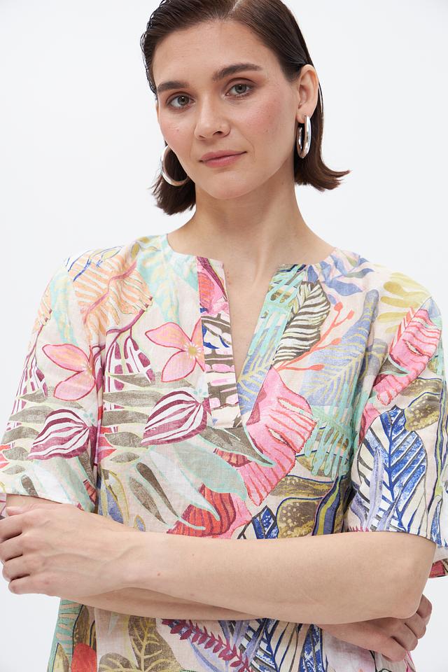 Платье Gerry Weber с ярким цветочным принтом выполнено из 100% льна, что обеспечивает комфорт и воздухопроницаемость в жаркую погоду. Удобный крой и длина миди делают его идеальным выбором для повседневной носки. Состав: лен 100%