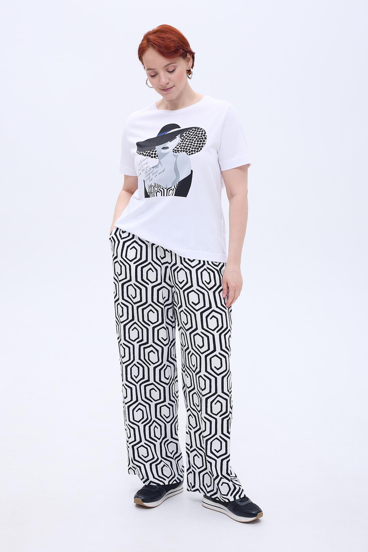 Элегантные брюки прямого кроя от Gerry Weber станут стильным дополнением вашего гардероба. Изготовленные из 100% вискозы, они обеспечивают исключительный комфорт и приятные тактильные ощущения. Оригинальный геометрический узор в черно-белых тонах придает образу динамичности и современной изысканности. Удобный пояс с регулируемым шнурком гарантирует идеальную посадку, а наличие боковых карманов добавляет практичности.