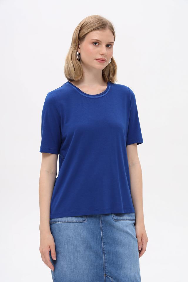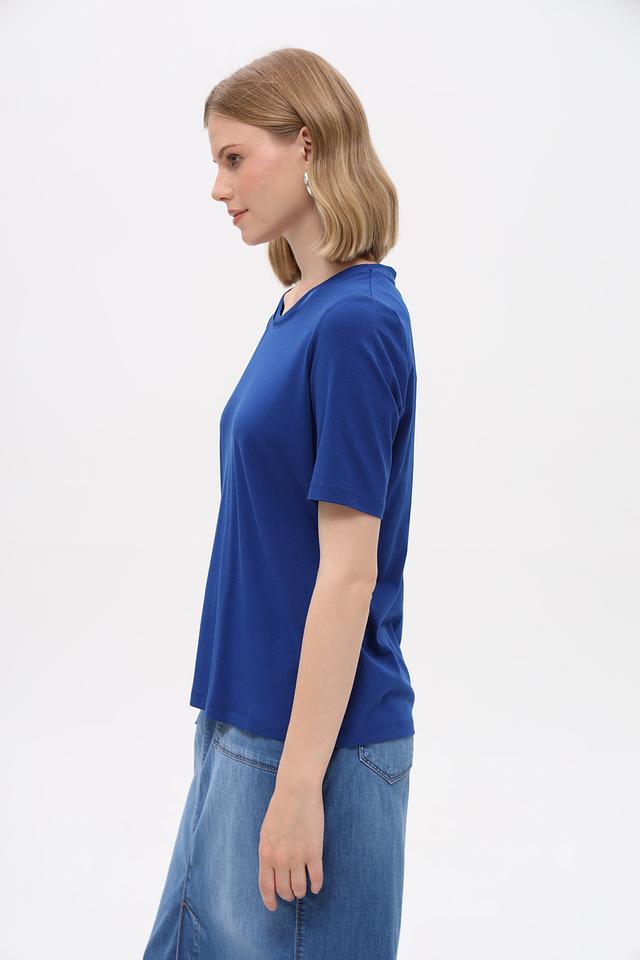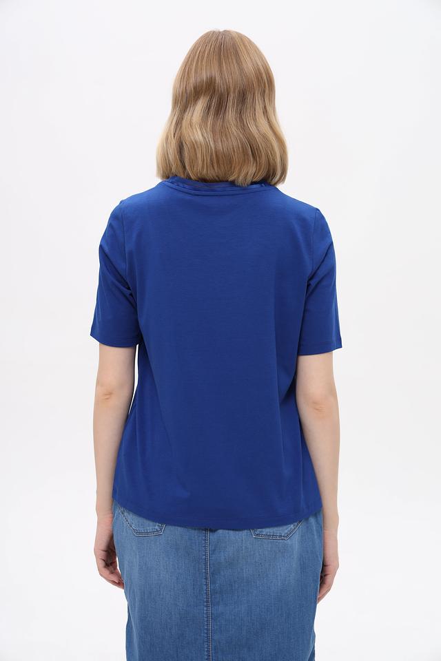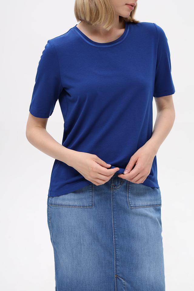 Базовая женская футболка от бренда Gerry Weber. Выполнена в насыщенном синем цвете, идеально подходит для создания повседневных образов.
