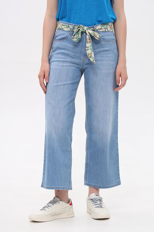 Особенности модели: высокая посадка, широкие штанины, классический пятикарманный крой. В комплекте идет пояс с цветочным принтом, который подчеркнет вашу индивидуальность и добавит образу женственности.
