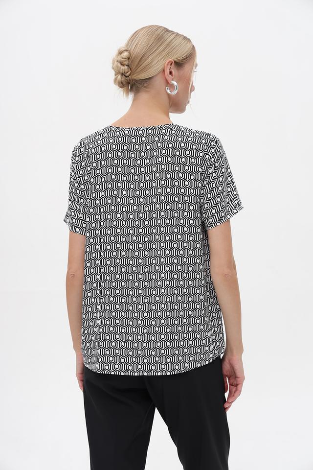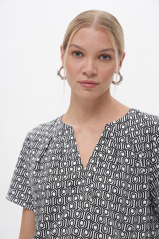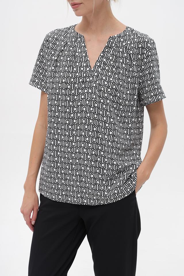 Женская блузка Gerry Weber станет стильным дополнением к вашему гардеробу. Выполнена в белом цвете с эффектным геометрическим принтом в чёрном цвете, который придает образу изысканность.