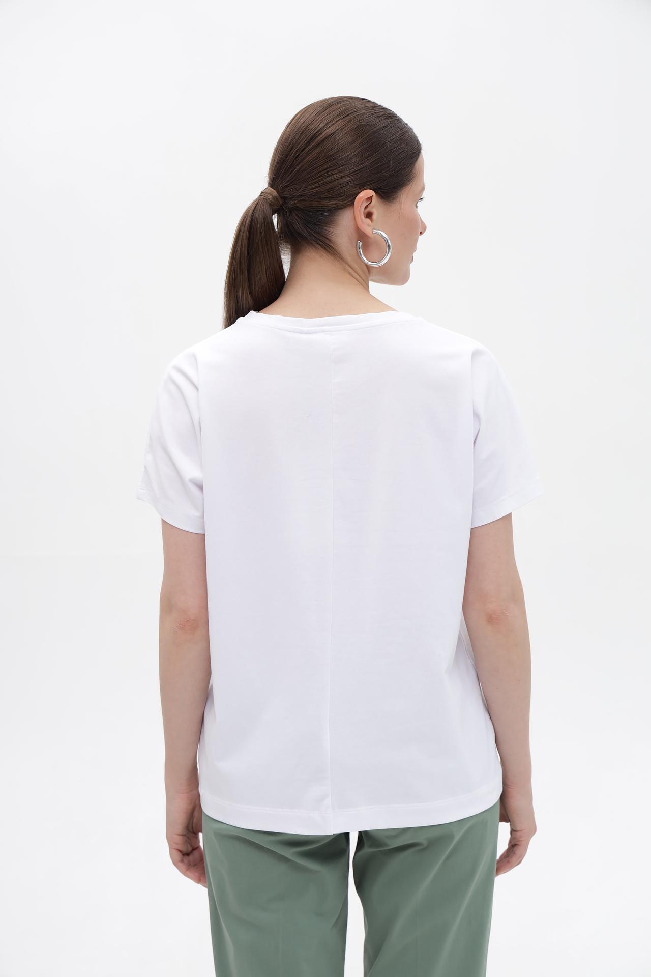 - Универсальность: Футболка идеально сочетается с джинсами, юбками и шортами, подходит для повседневной носки и особых случаев.