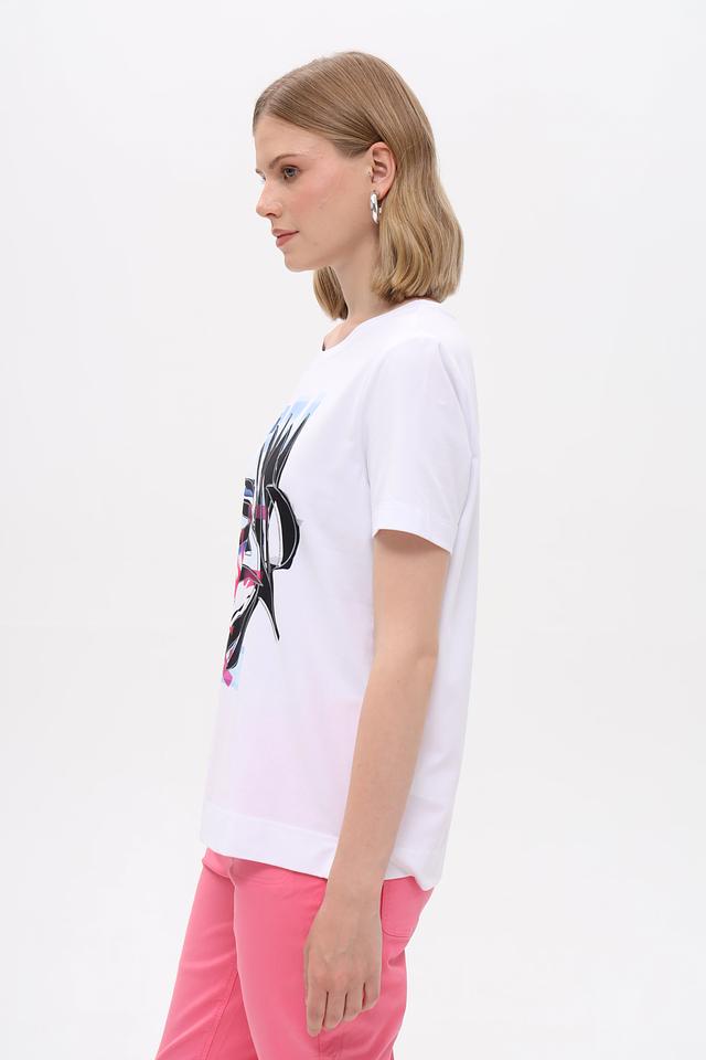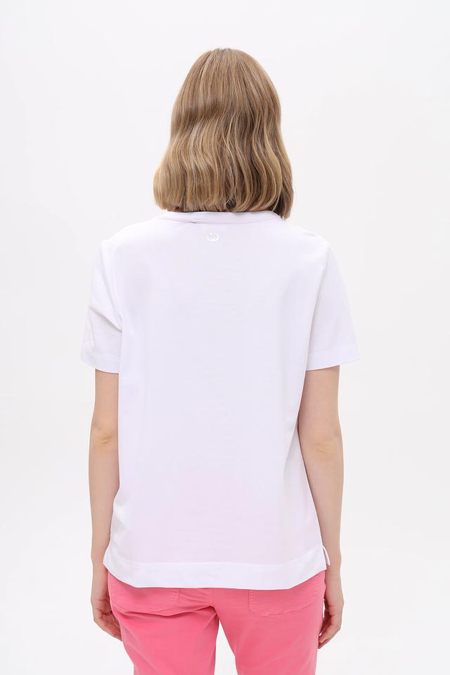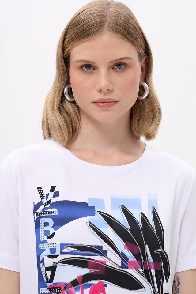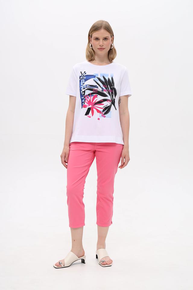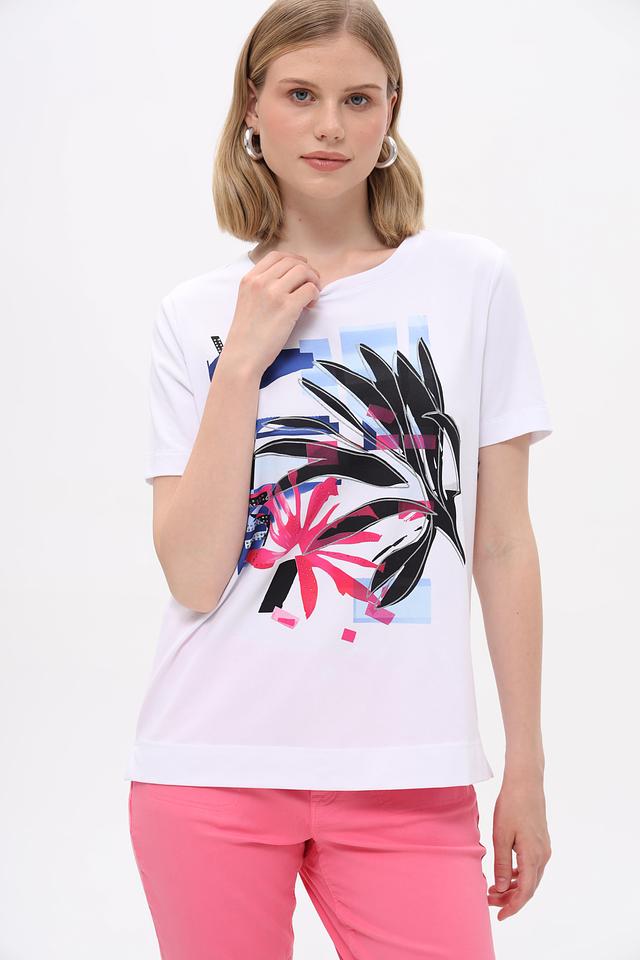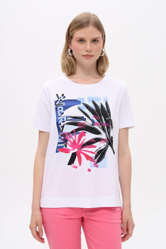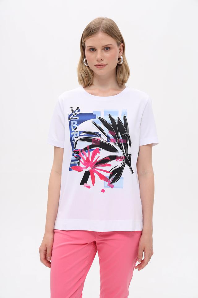 Белая футболка Gerry Weber с ярким тропическим принтом. Изготовлена из мягкого хлопка с добавлением эластана для комфортной посадки и свободы движений. Состав: хлопок 94%, эластан 6%