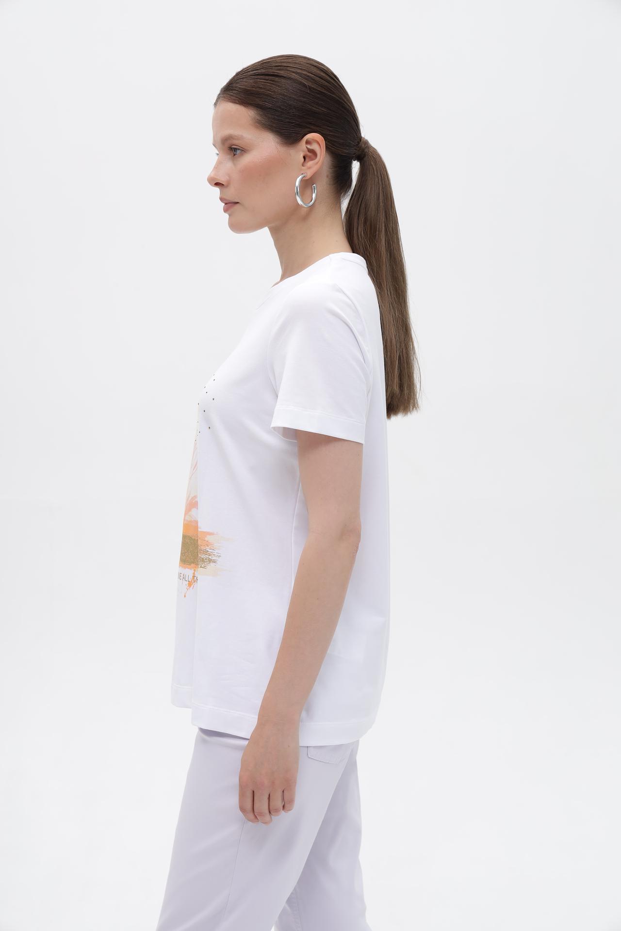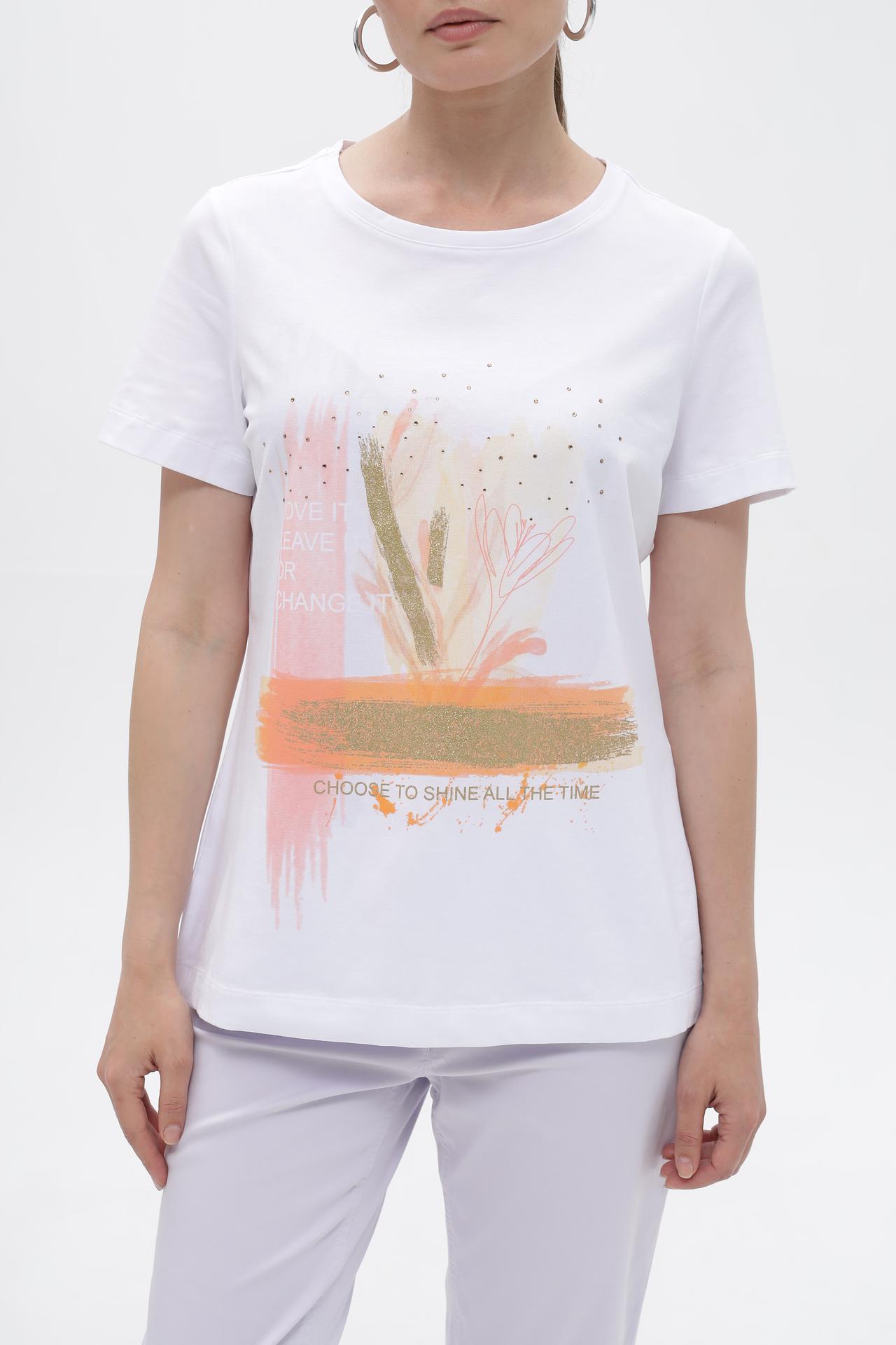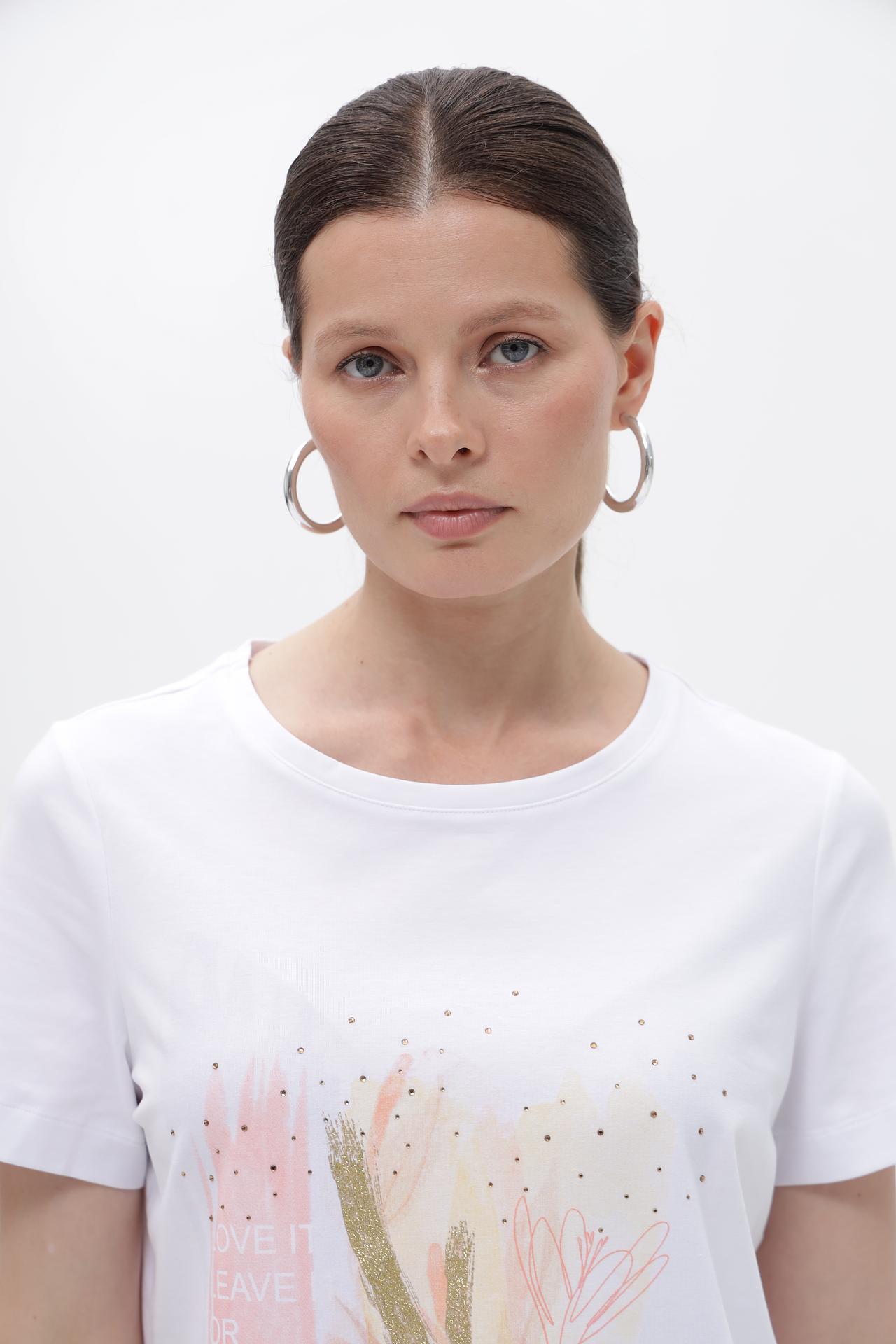 Футболка Gerry Weber белая с декоративным принтом и стразами