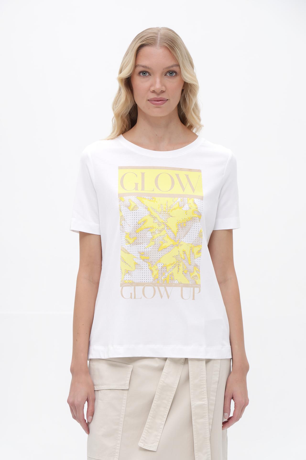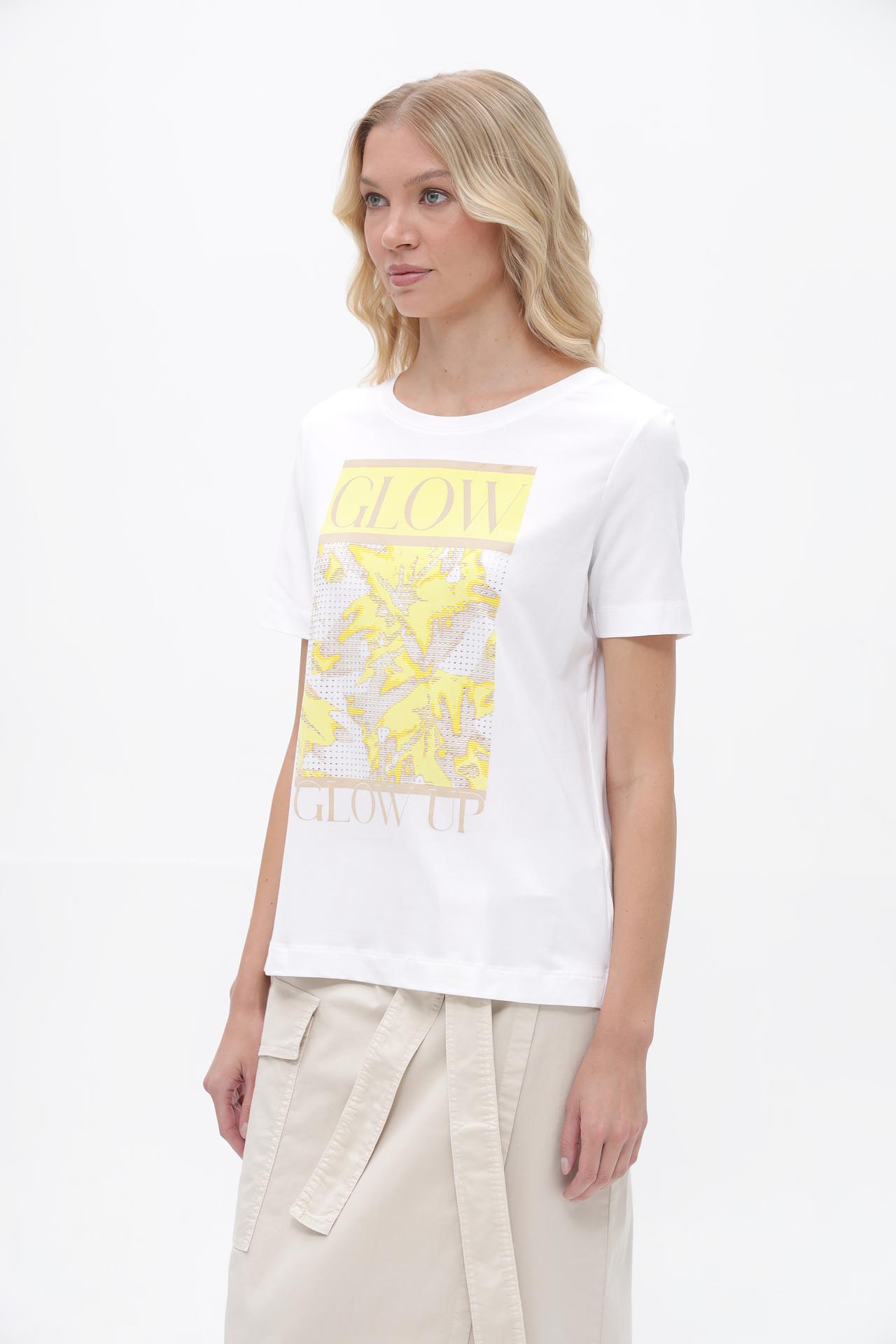 Футболка Gerry Weber белая с ярким принтом и стразами