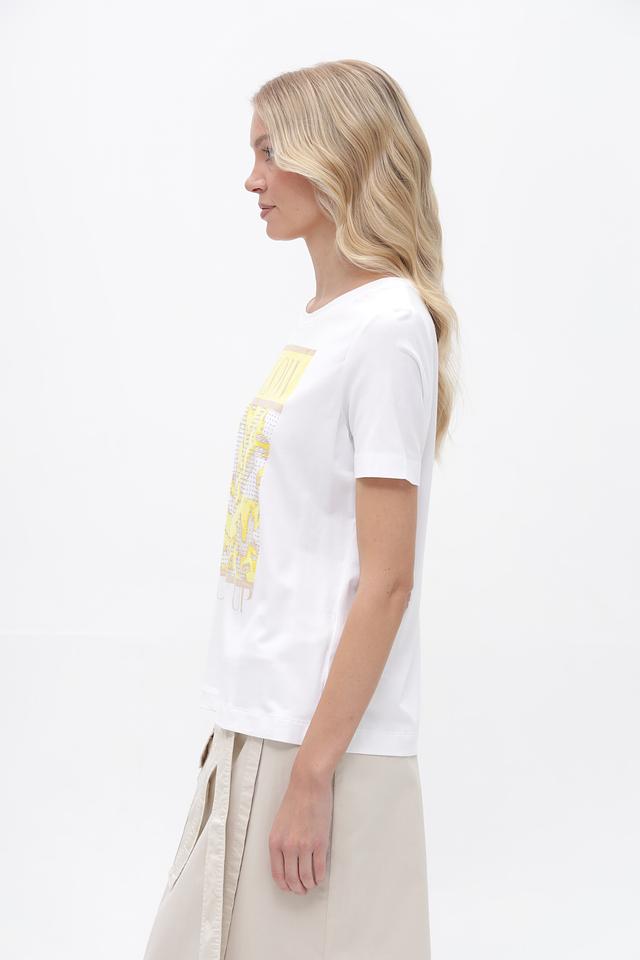 Белая футболка Gerry Weber EDITION с ярким принтом — стильное дополнение к вашему образу. Изготовлена из мягкого хлопка с добавлением модала и эластана для комфорта и хорошей посадки. Состав: хлопок 47%, модал 47%, эластан 6%