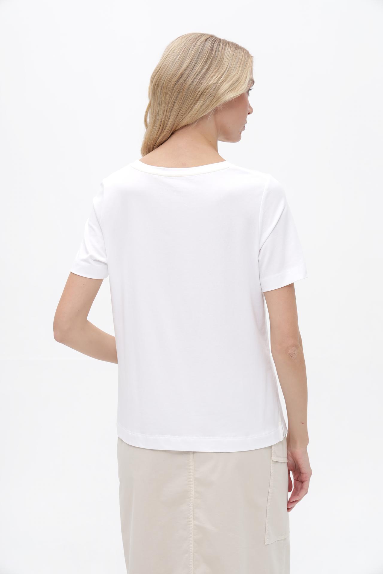 - Универсальный крой. Прямой силуэт и классический круглый вырез делают эту футболку идеальной основой для различных ансамблей. Она легко сочетается как с джинсами и шортами, так и с юбками или брюками, позволяя создавать разнообразные образы.