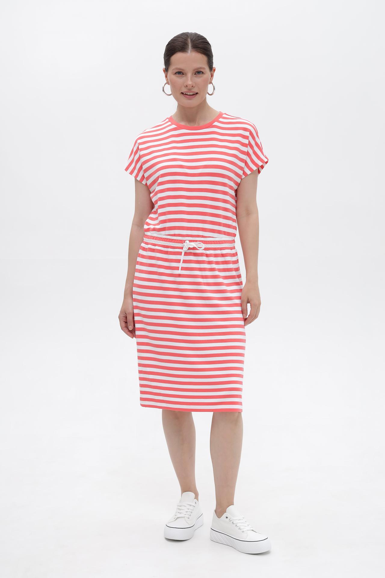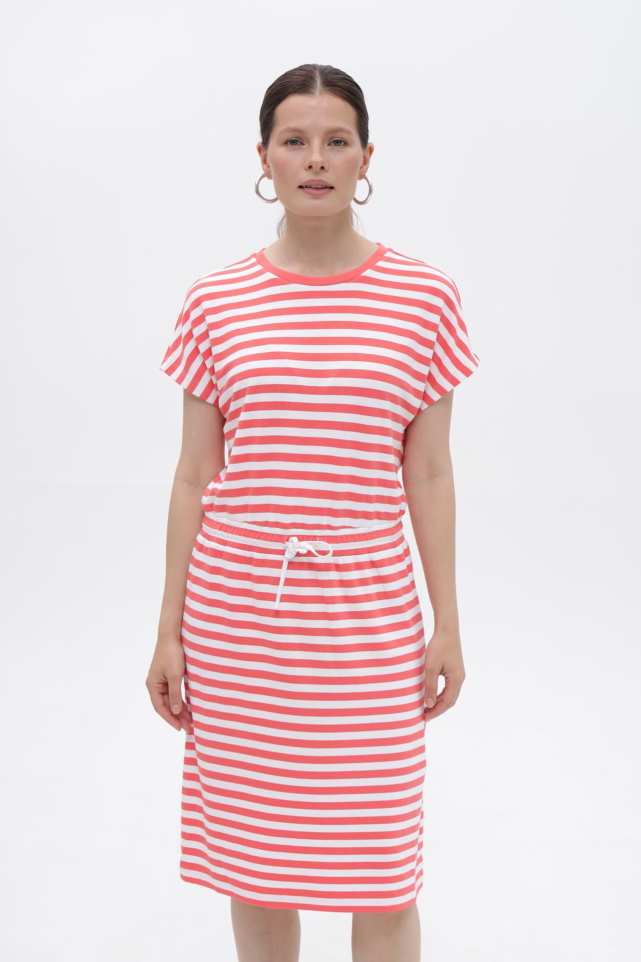 Летнее платье-футболка от Gerry Weber в классическую красно-белую полоску — идеальный выбор для создания непринужденного и стильного образа. Прямой крой с короткими рукавами и длина до колена обеспечивают комфорт и свободу движений. Мягкая и приятная к телу ткань делает это повседневное платье незаменимым в теплом сезоне.