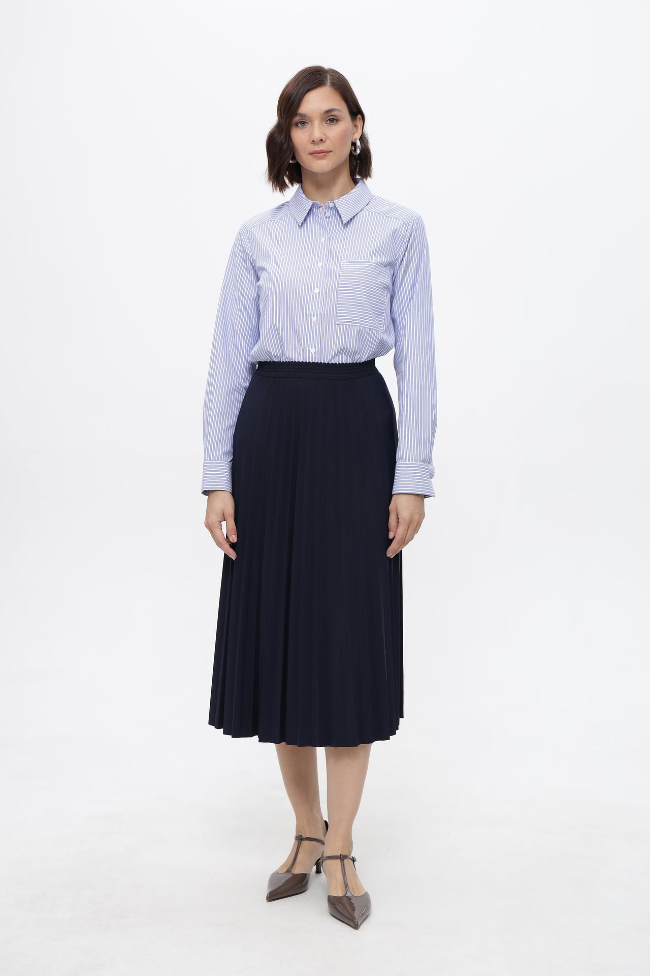 - Универсальность: Темно-синий цвет является базовым и легко сочетается с различными цветами и стилями одежды. Юбка подходит для создания как деловых, так и повседневных образов.