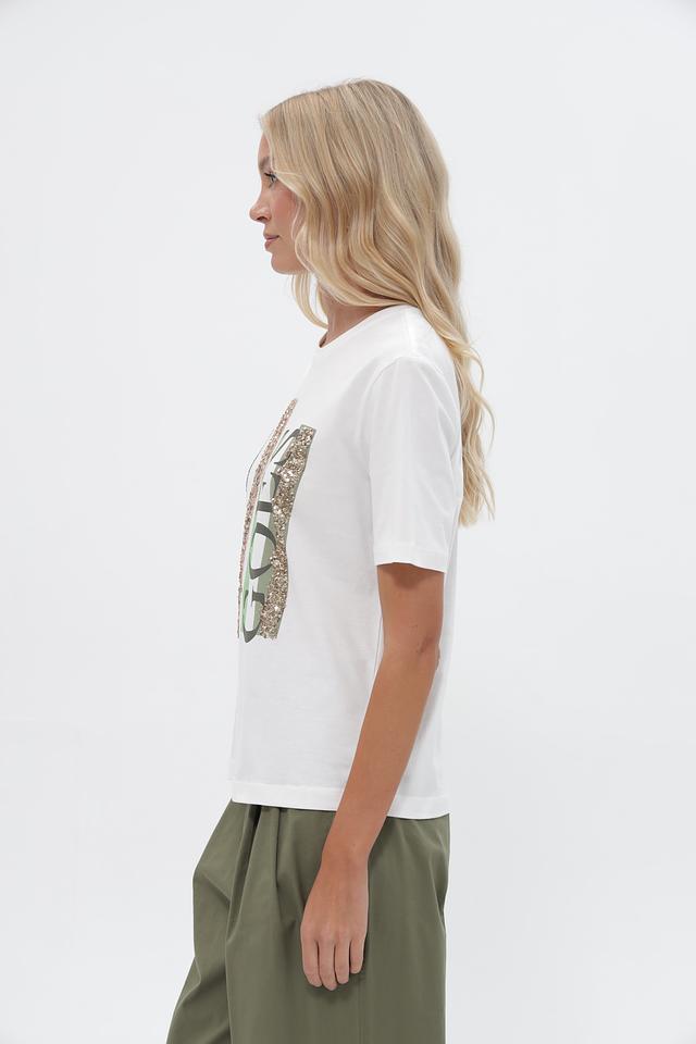 Белая футболка Gerry Weber с эффектным принтом. Изготовлена из 100% хлопка, обеспечивающего комфорт в носке. Стильный крой и оригинальный дизайн. Состав: хлопок 100%