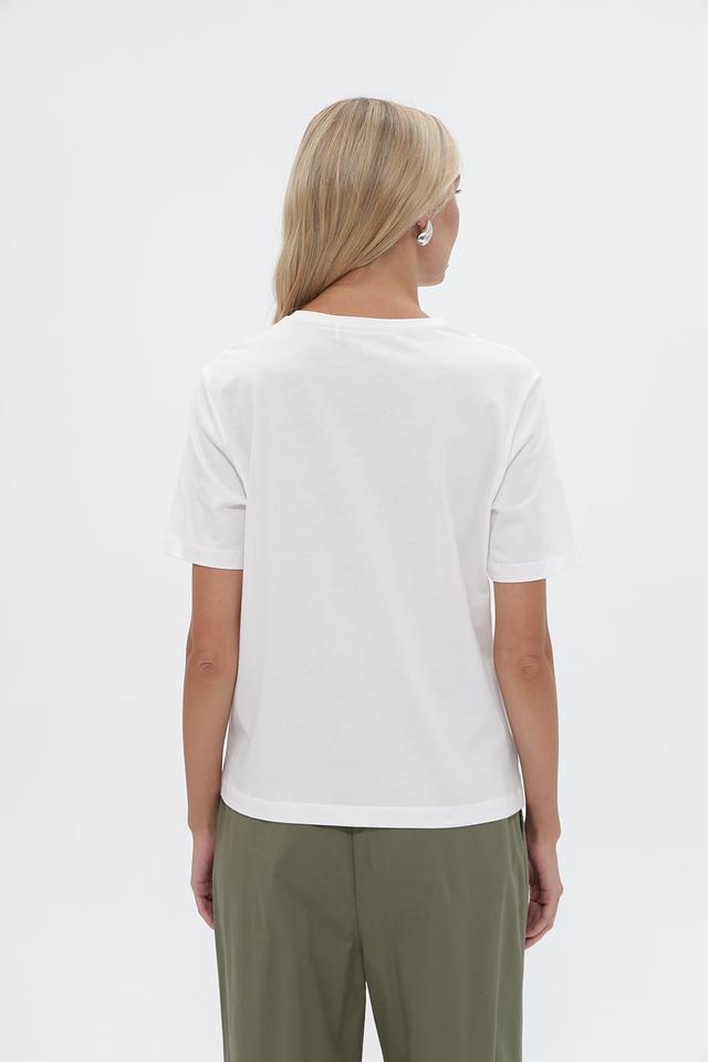 Футболка имеет прямой, слегка свободный крой, который обеспечивает свободу движений и хорошо сочетается с различными вариантами одежды. Идеально подходит для создания повседневных образов.