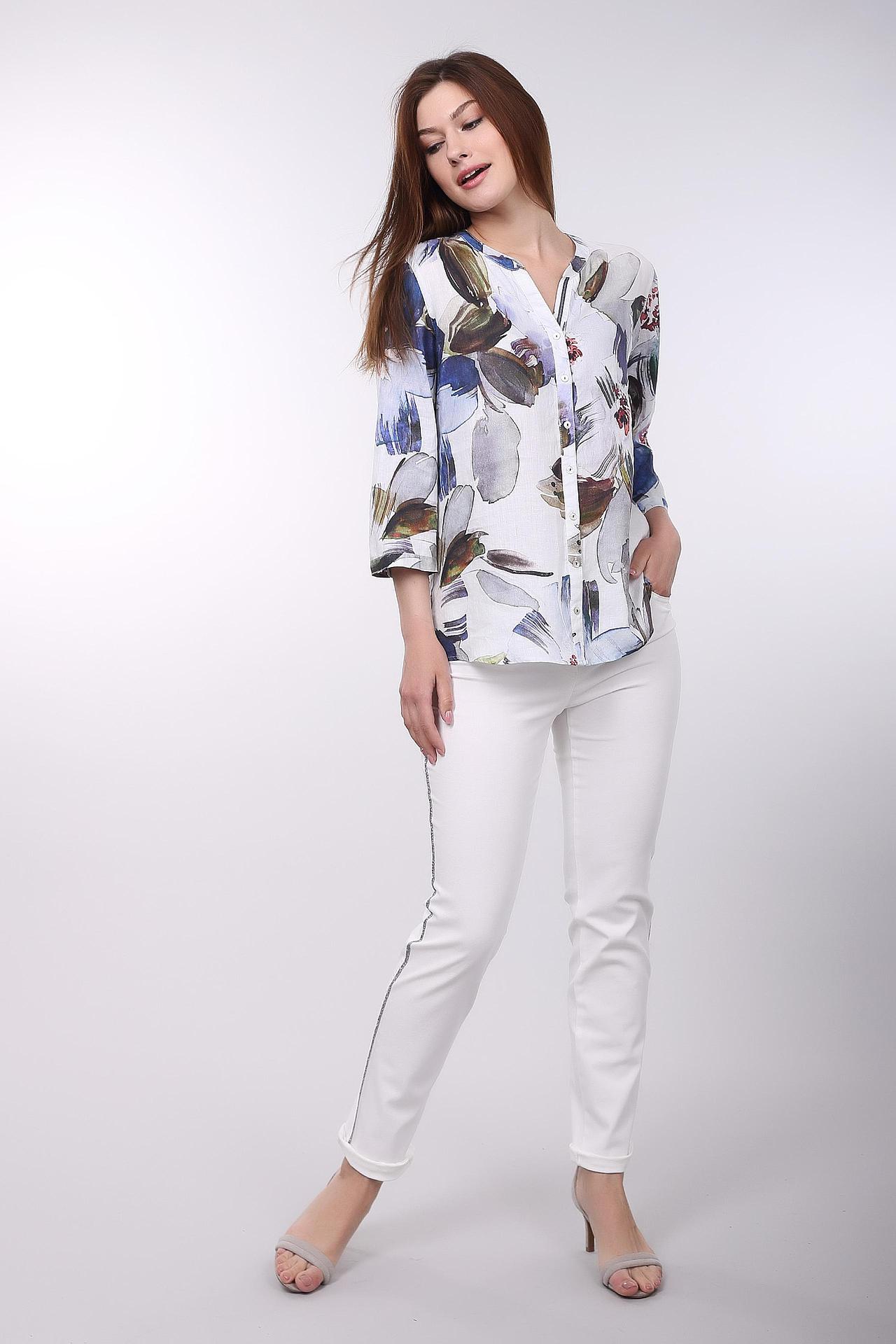 Блуза Gerry Weber белая с цветочным принтом и перламутровыми пуговицами