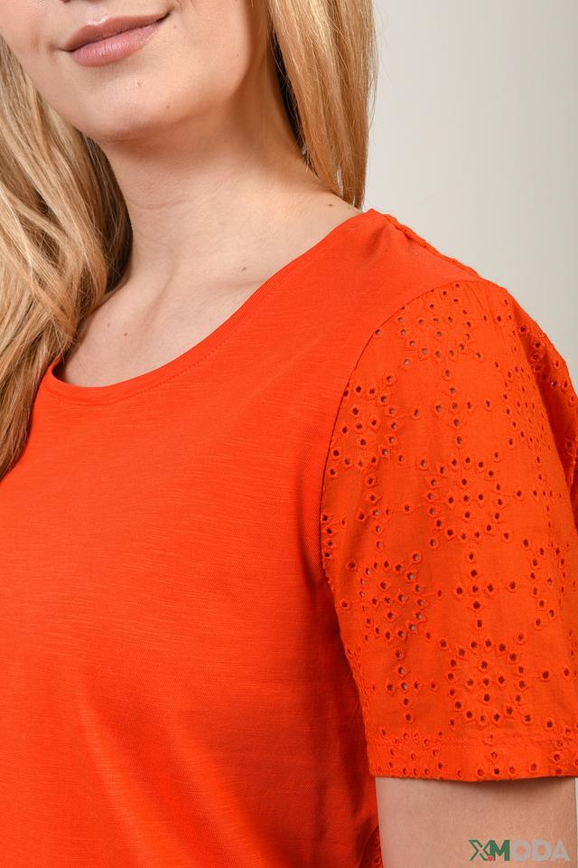 Оранжевая блуза Gerry Weber из 100% хлопка с декоративной вышивкой на рукавах. Модель имеет округлый вырез горловины и короткие рукава, идеально подходит для создания повседневных образов. Состав: хлопок 100%