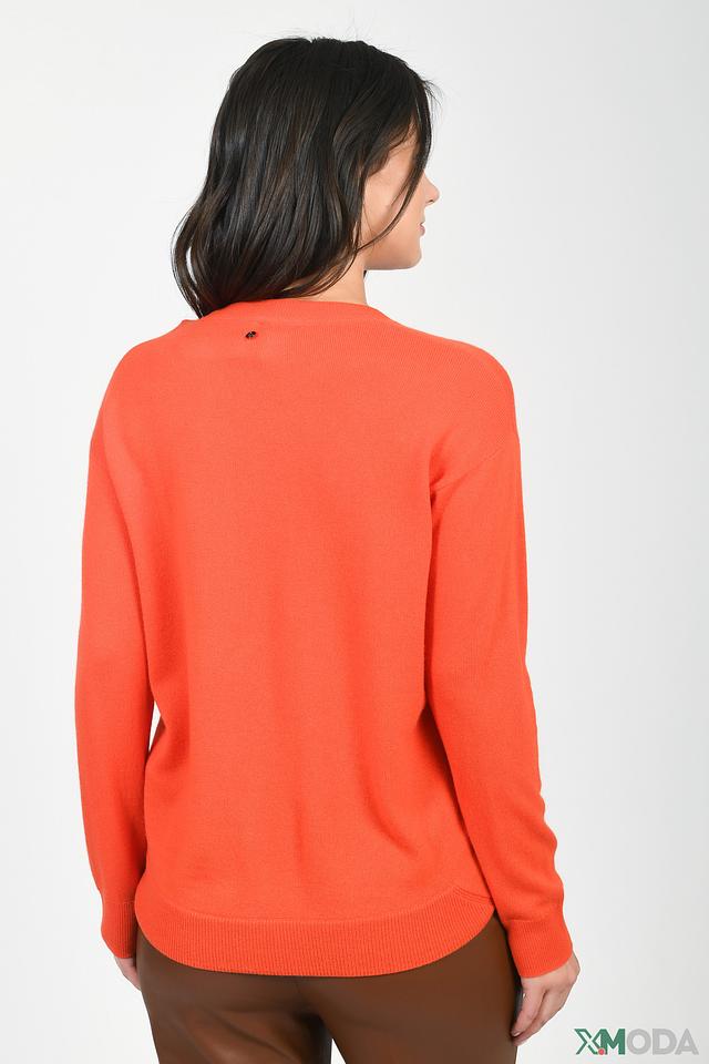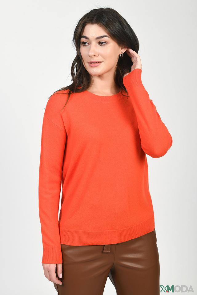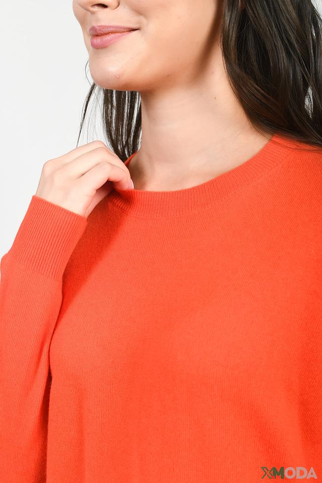 Пуловер имеет насыщенный оранжевый цвет, который привнесет яркость в ваш образ. Он идеально сочетается с брюками, юбками и джинсами, создавая стильный и элегантный вид.