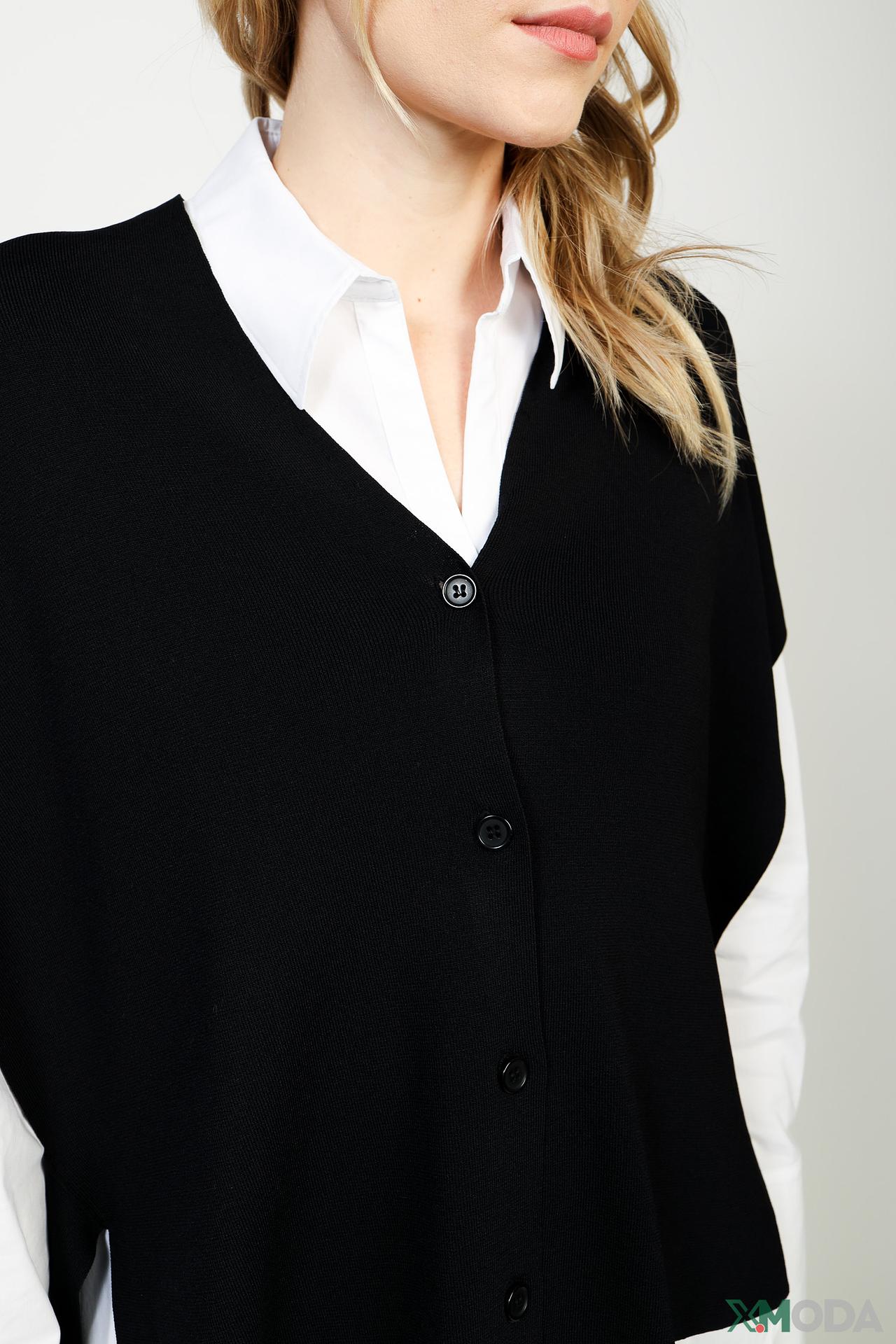 - Универсальность: Жилет прекрасно смотрится как с блузками и рубашками, так и с футболками или водолазками. Он подходит для создания как деловых, так и повседневных ансамблей.